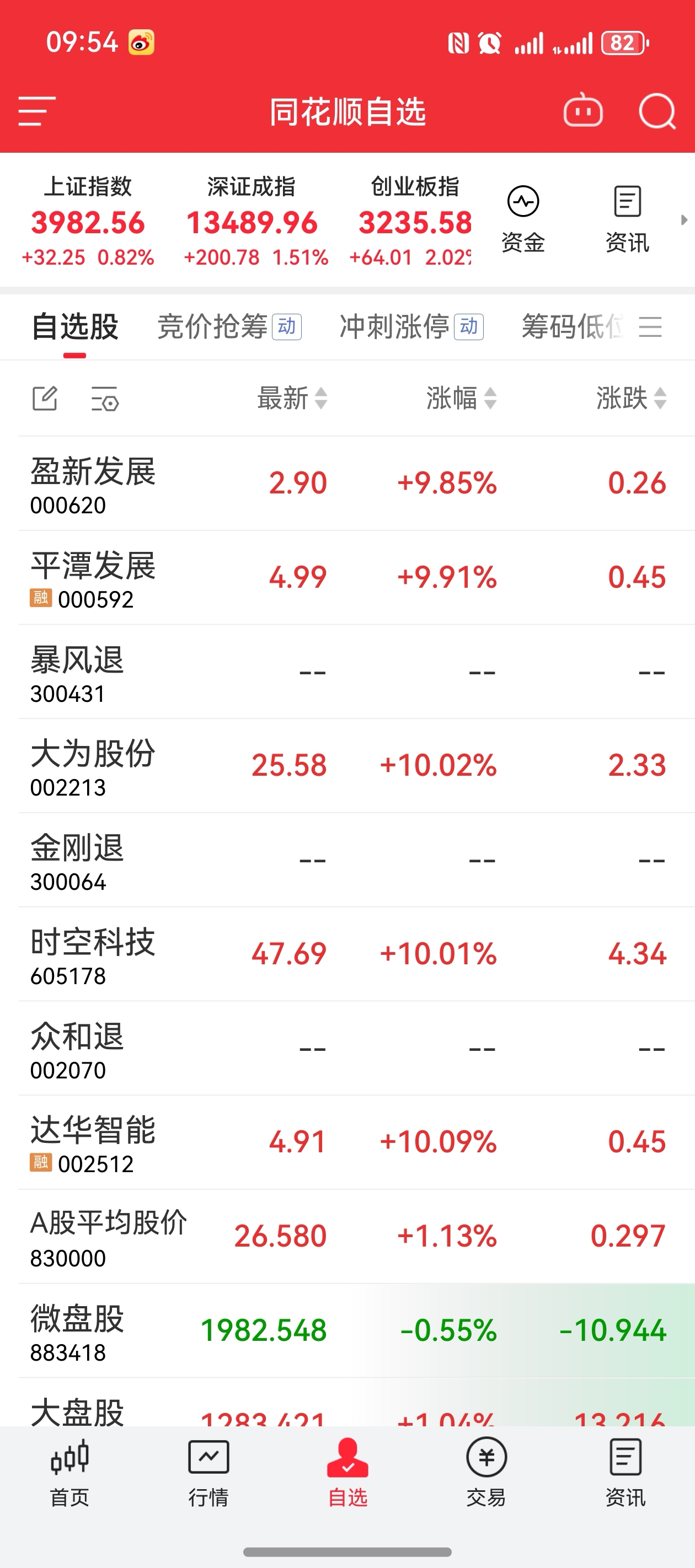 10月27日9点28分:盈新发展,平潭发展,大为股份,时空科技,分仓买靠前排的,