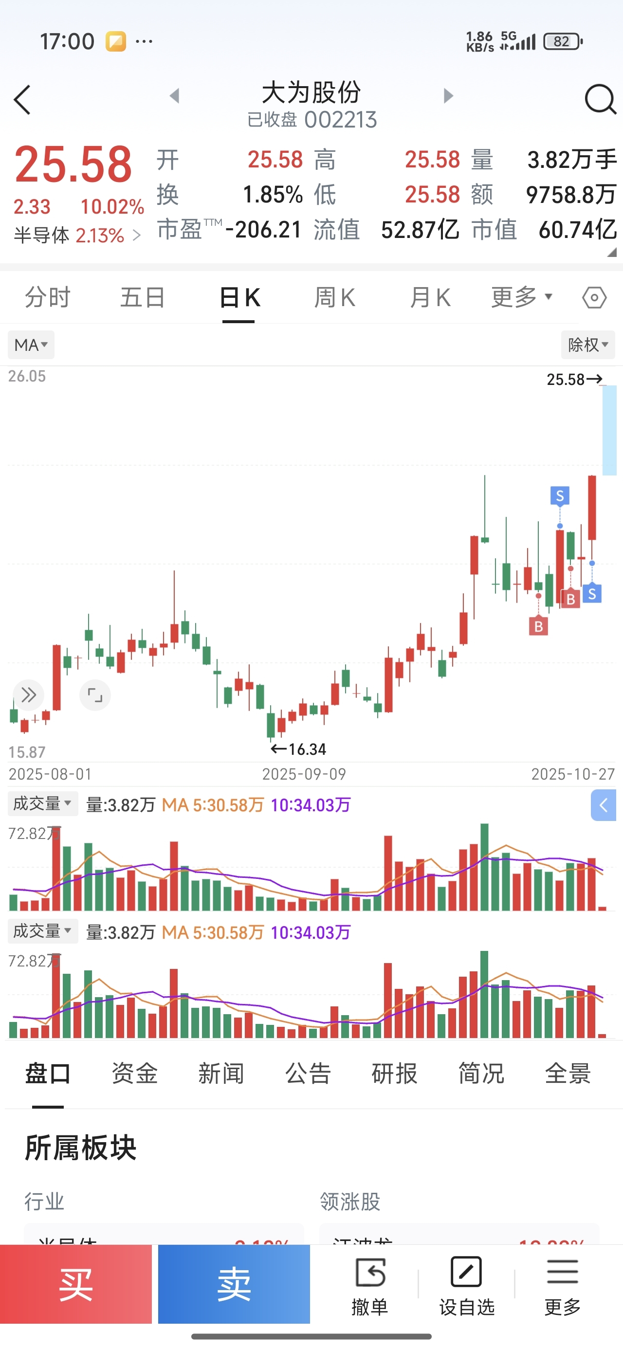 $大为股份(SZ002213)$ 我每天都在问我自己,我还有机会吗?