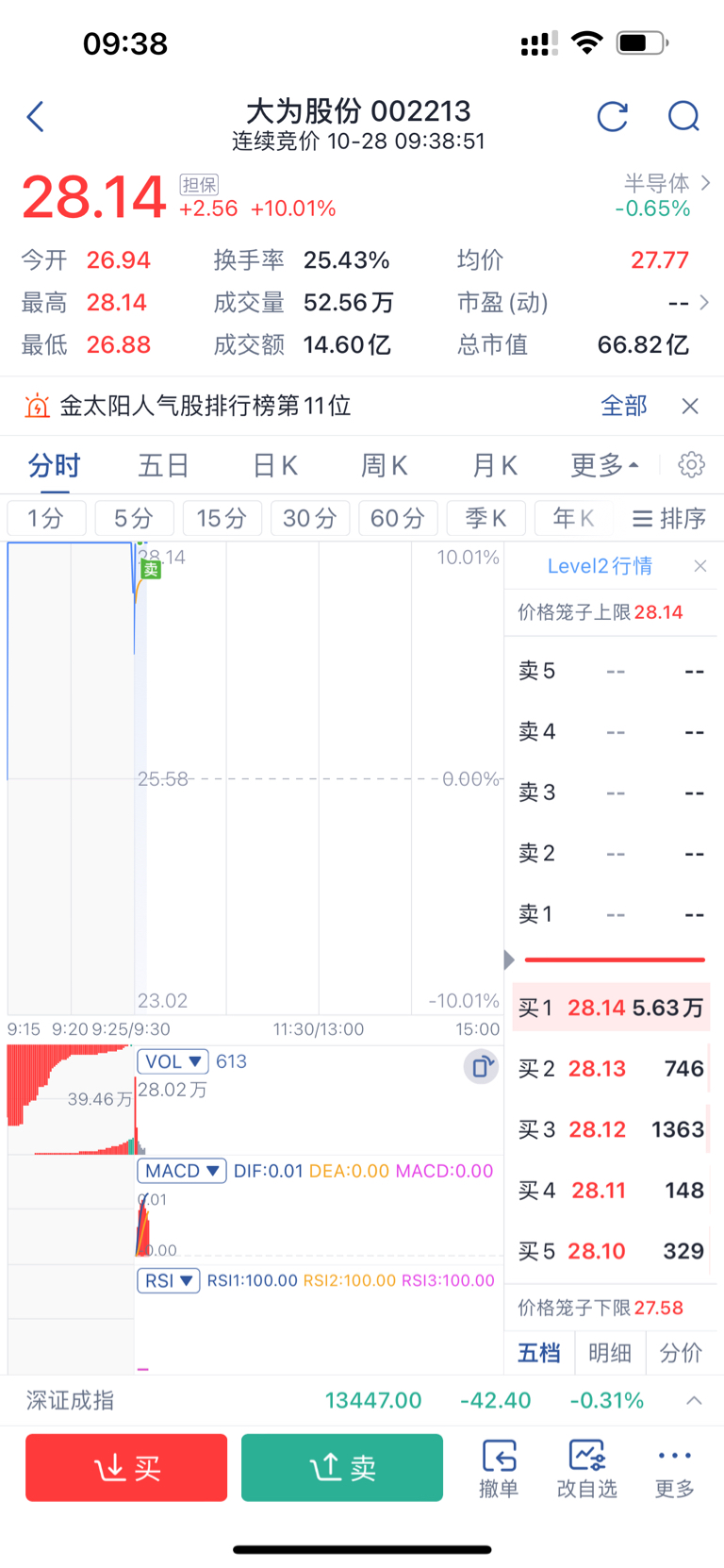 $大为股份(SZ002213)$ 把剩下的全清了,放量换手太过惊人,留下的兄弟发财吧