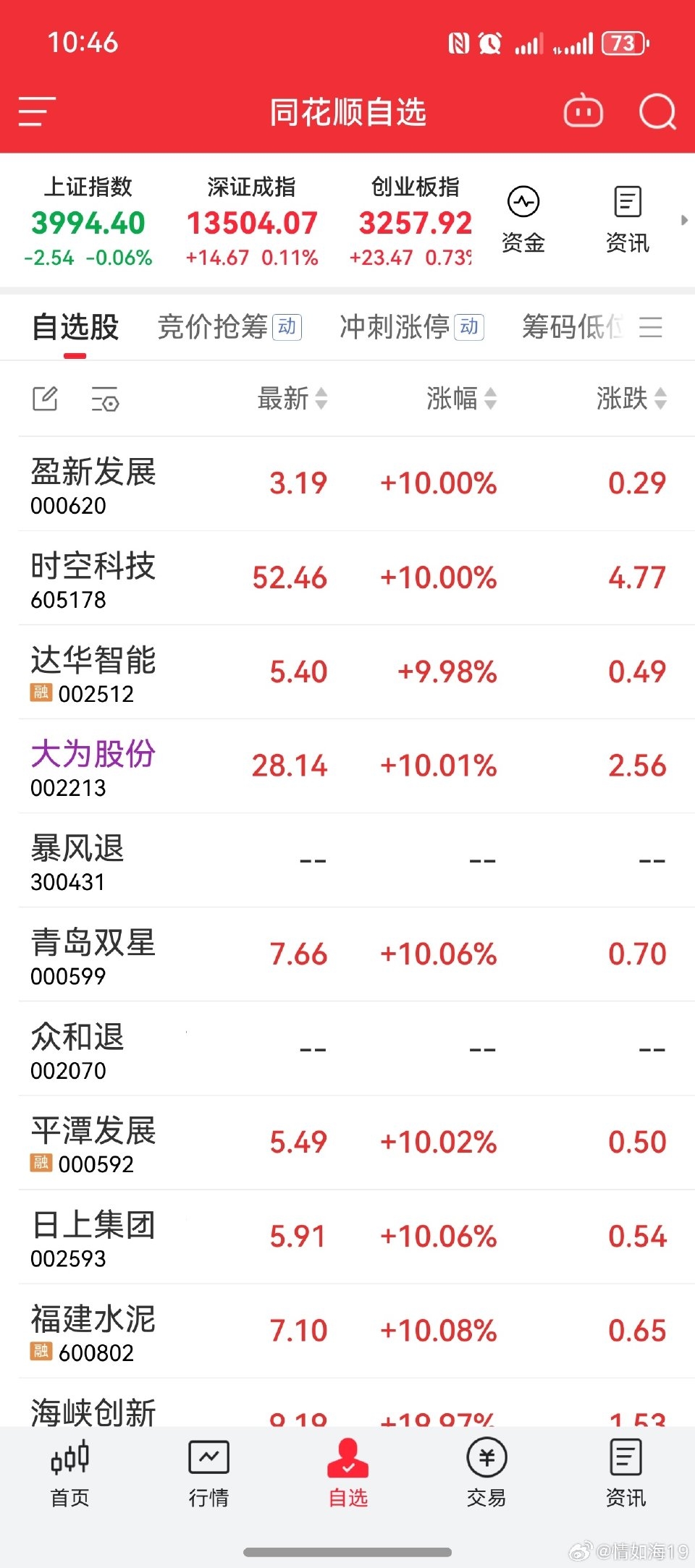10月28日9点28分:哥单点2天全仓盈新发展,大为股份,平潭发展,时空科技,达