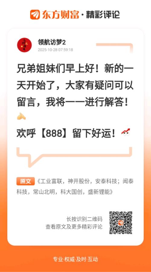 //@领航访梦2 :兄弟姐妹们早上好!新的一天开始了,大家有疑问可以留言,我将一一进行解答!