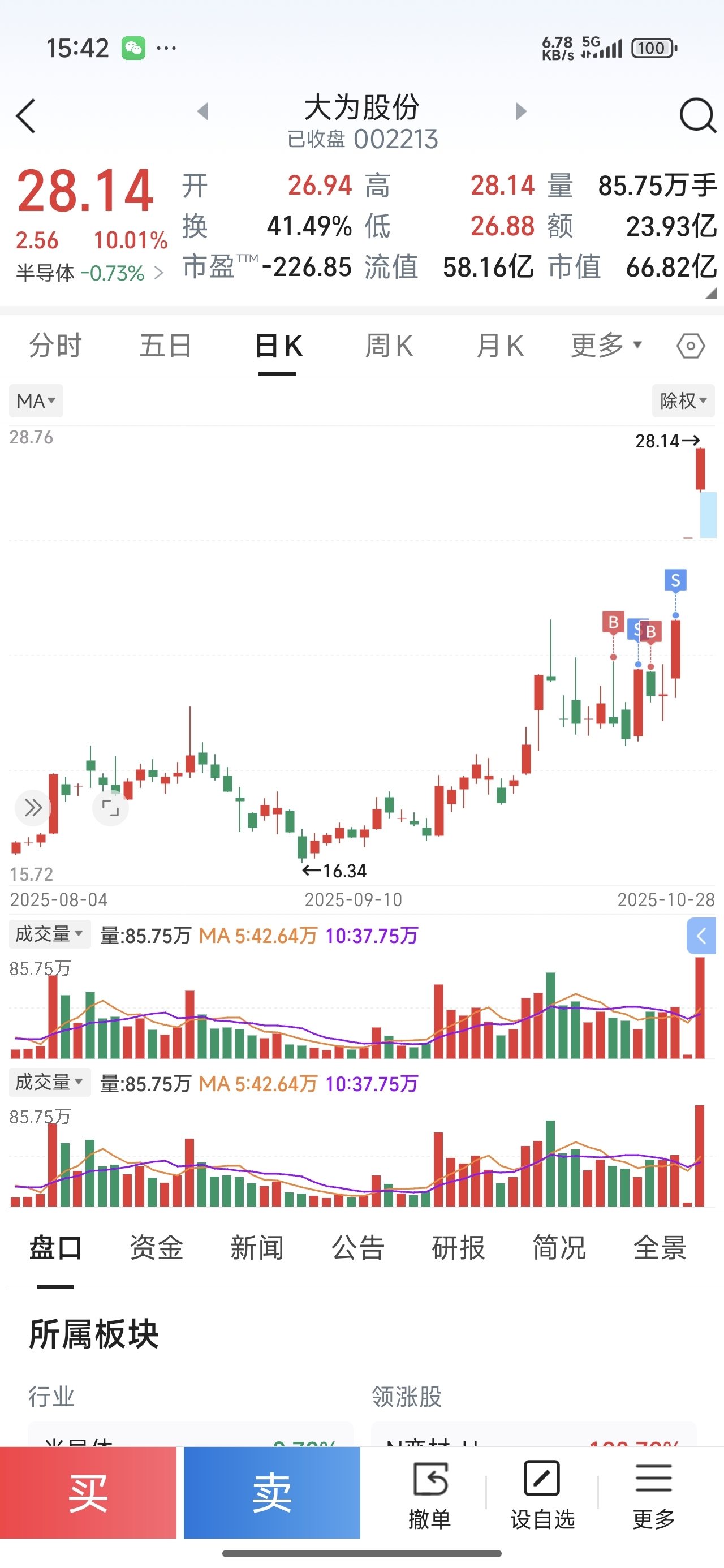 $大为股份(SZ002213)$ 我当时单笔梭哈买入时有多坚决,上板全仓卖出时就有多决绝。我已经忘记第多少次板上卖出完全没有走坏信号的单子...好像这早就变成了习惯,早就变成了无意识...我多想真真正正一个标的从头到一个好的位置,把盈利的单子哪怕持有超过一周,可我真的忍不住啊
