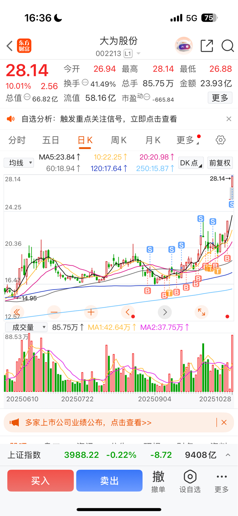 $大为股份(SZ002213)$ 再见啦!留下的继续发财哈!