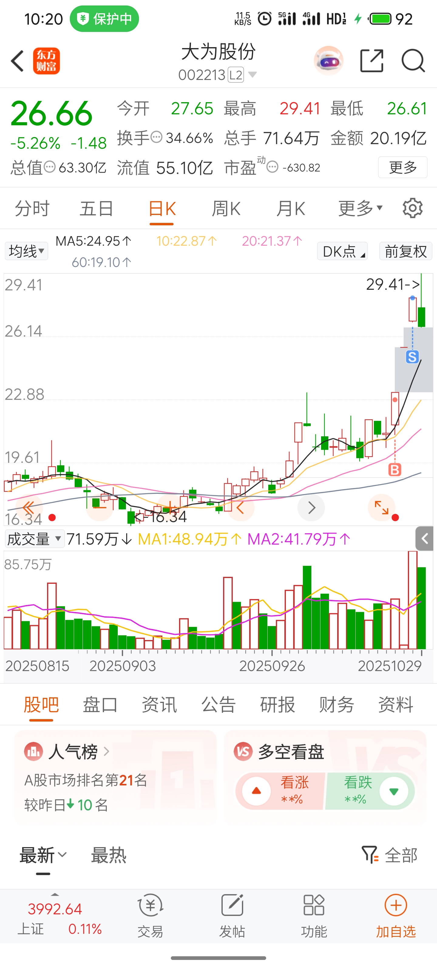 温馨提示: 1.根据《证券法》规定,禁止编造、传播虚假信息或者误导性信息,扰乱证券市场;2.用户在本社区发表的所有资料、言论等仅代表个人观点,与本网站立场无关,不对您构成任何投资建议。用户应基于自己的独立判断,自行决定证券投资并承担相应风险。《东方财富社区管理规定》