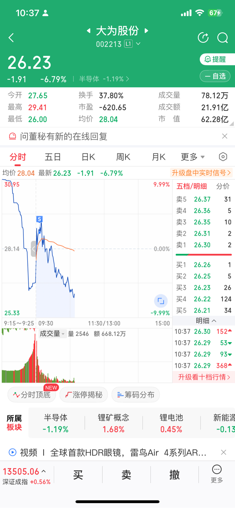 $大为股份(SZ002213)$ 今早走了,庆幸,妈的吓死宝宝了,喝了点汤
