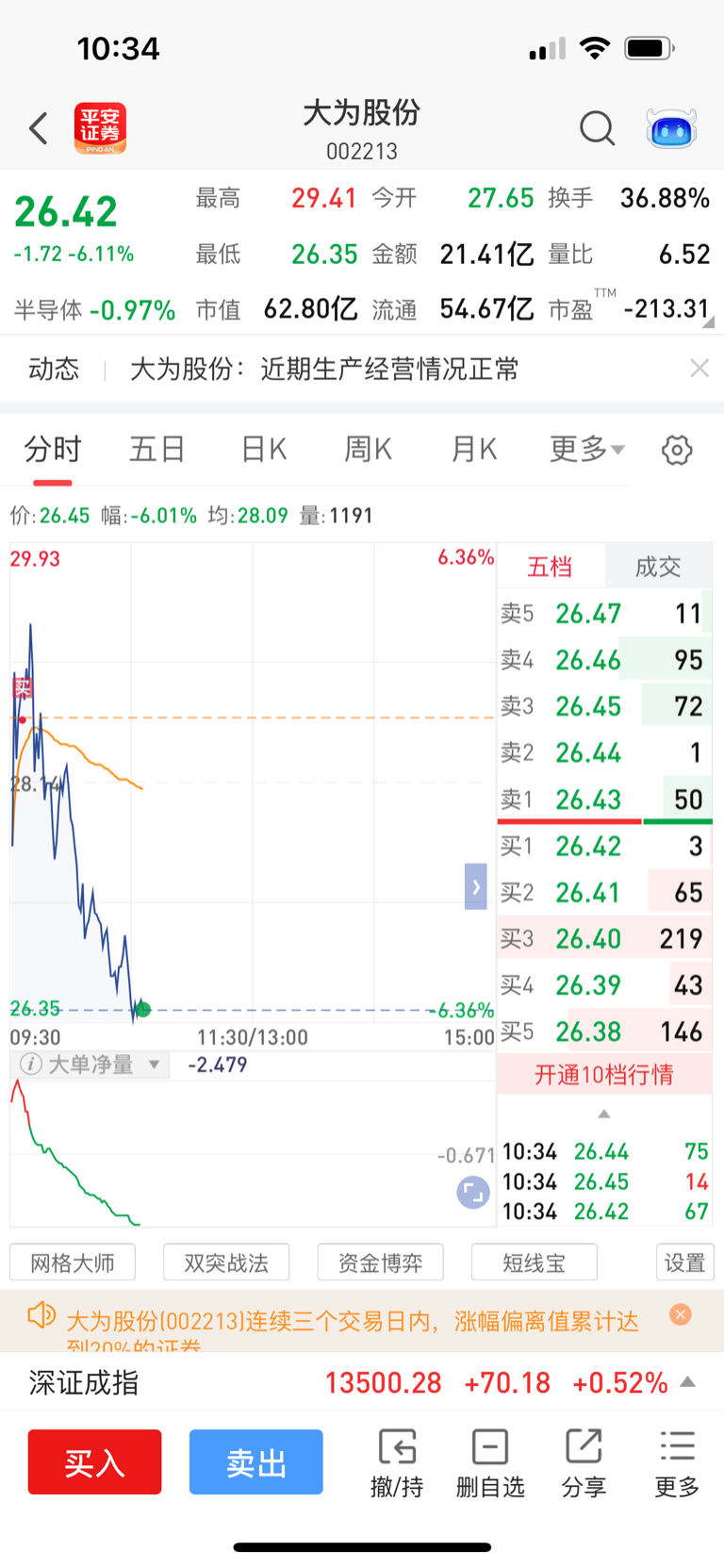 $大为股份(SZ002213)$ 愿赌服输,说了不追高还是管不住手呐