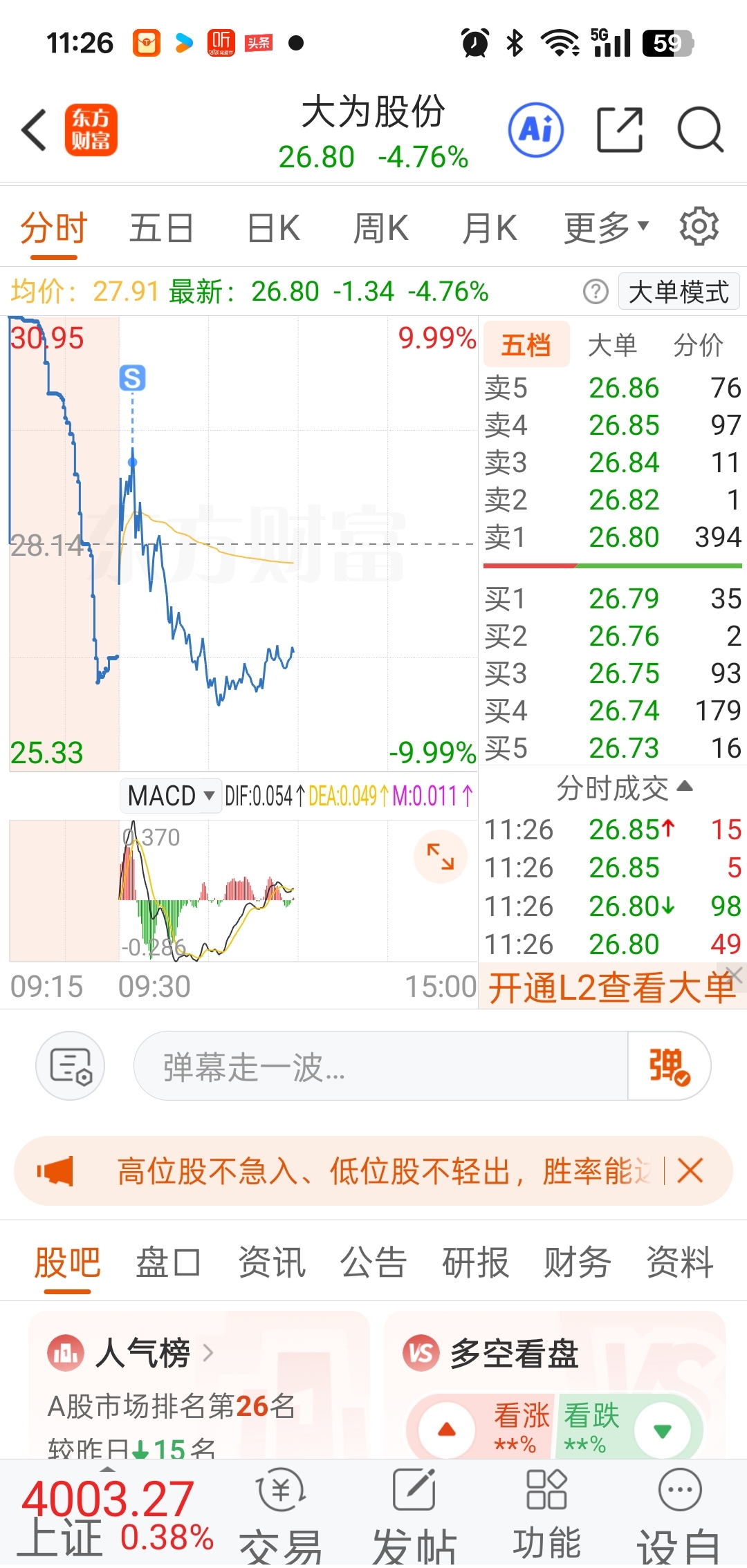 $大为股份(SZ002213)$ 下午要不要接回来?