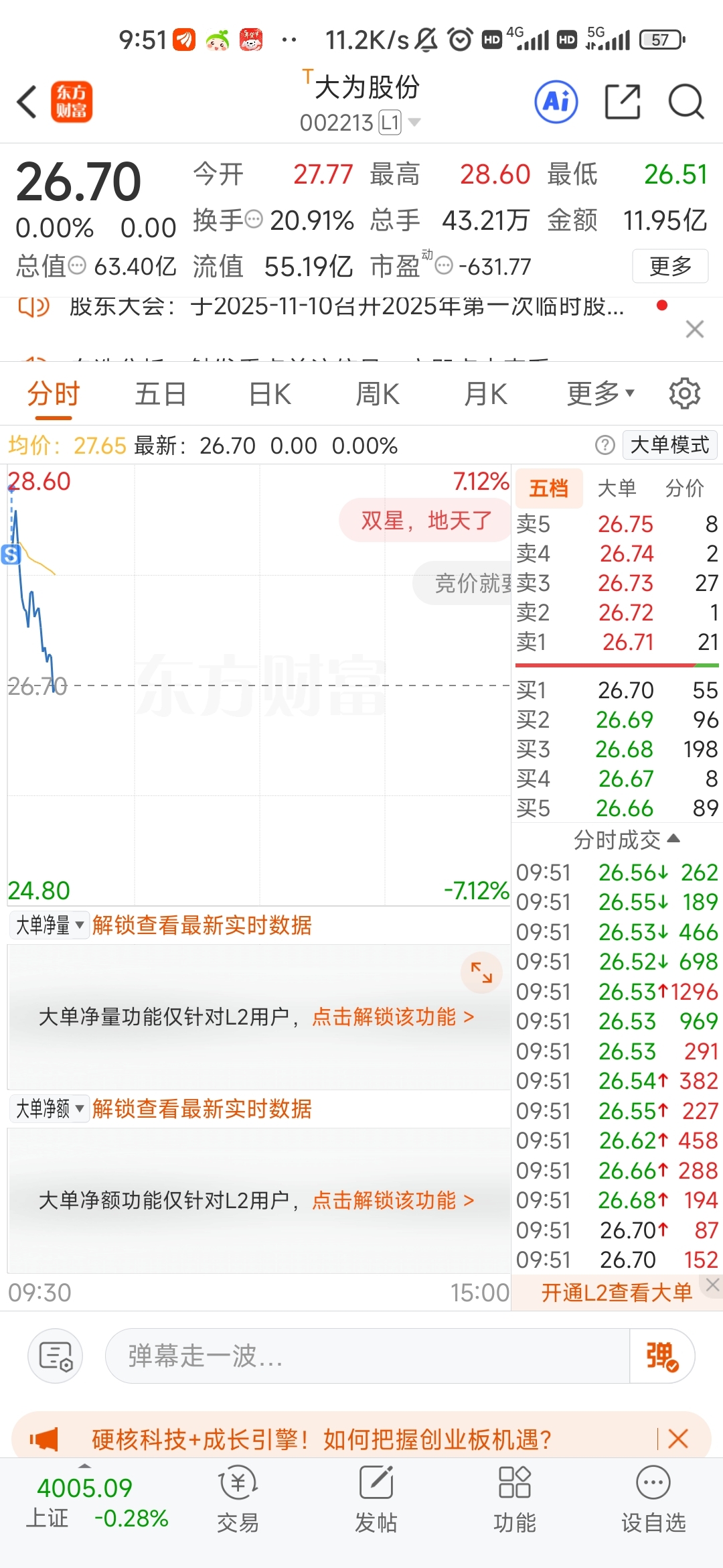 $大为股份(SZ002213)$ 这种就不能犹豫不能幻想,吓死人