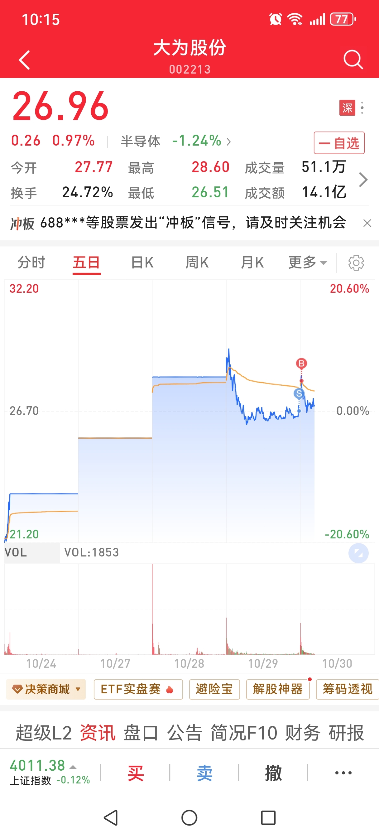 $大为股份(SZ002213)$ 还想起飞,昨天尾盘全部清仓了,不好好的深水低开,我让你飞,我就买了1手,我直接给你买蹦,再蹦跶呀,你不牛比的想反包吗
