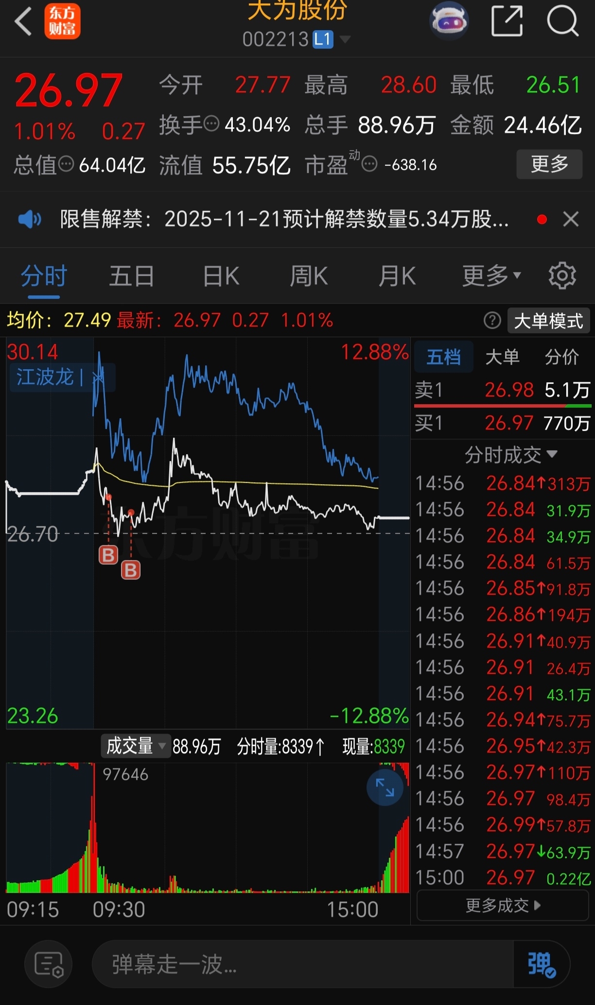 $大为股份(SZ002213)$ 已经沦为江波龙小跟班,明天科技有修复还有冲高出局希望,明天他们都杀,大为不能独善其身!小江不行大为也不行,大为就后面一个小助攻小弟