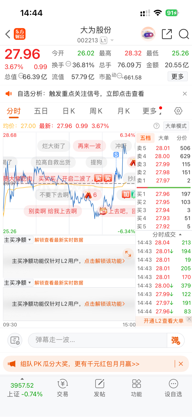 $大为股份(SZ002213)$  太狗了吧,就缺我那十来手吗