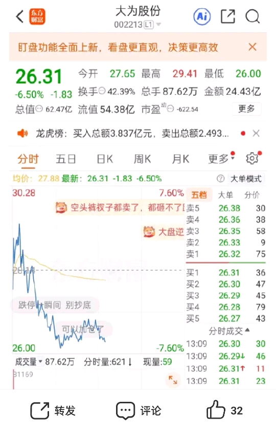 $大为股份(SZ002213)$ 这波小涨看着稳!主力控盘有章法,回调不慌、稳步推升,后续要是量能跟上,突破前高那都是顺理成章的事儿~