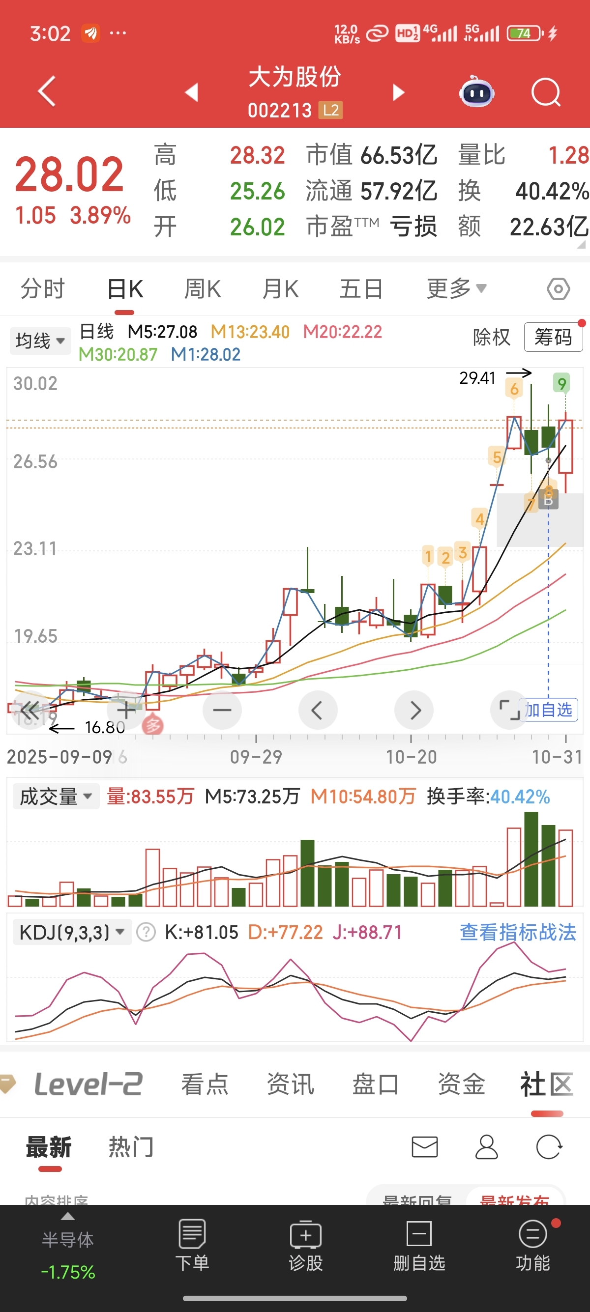 $大为股份(SZ002213)$  没动,等周一,有没有没拿住的