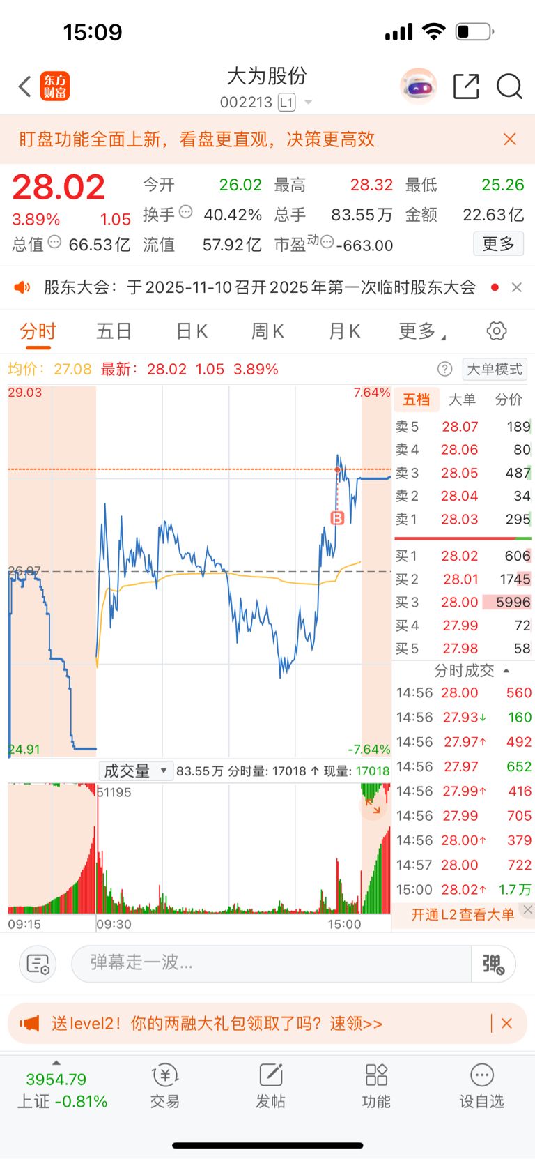 $大为股份(SZ002213)$ 跟进,周一希望给力点