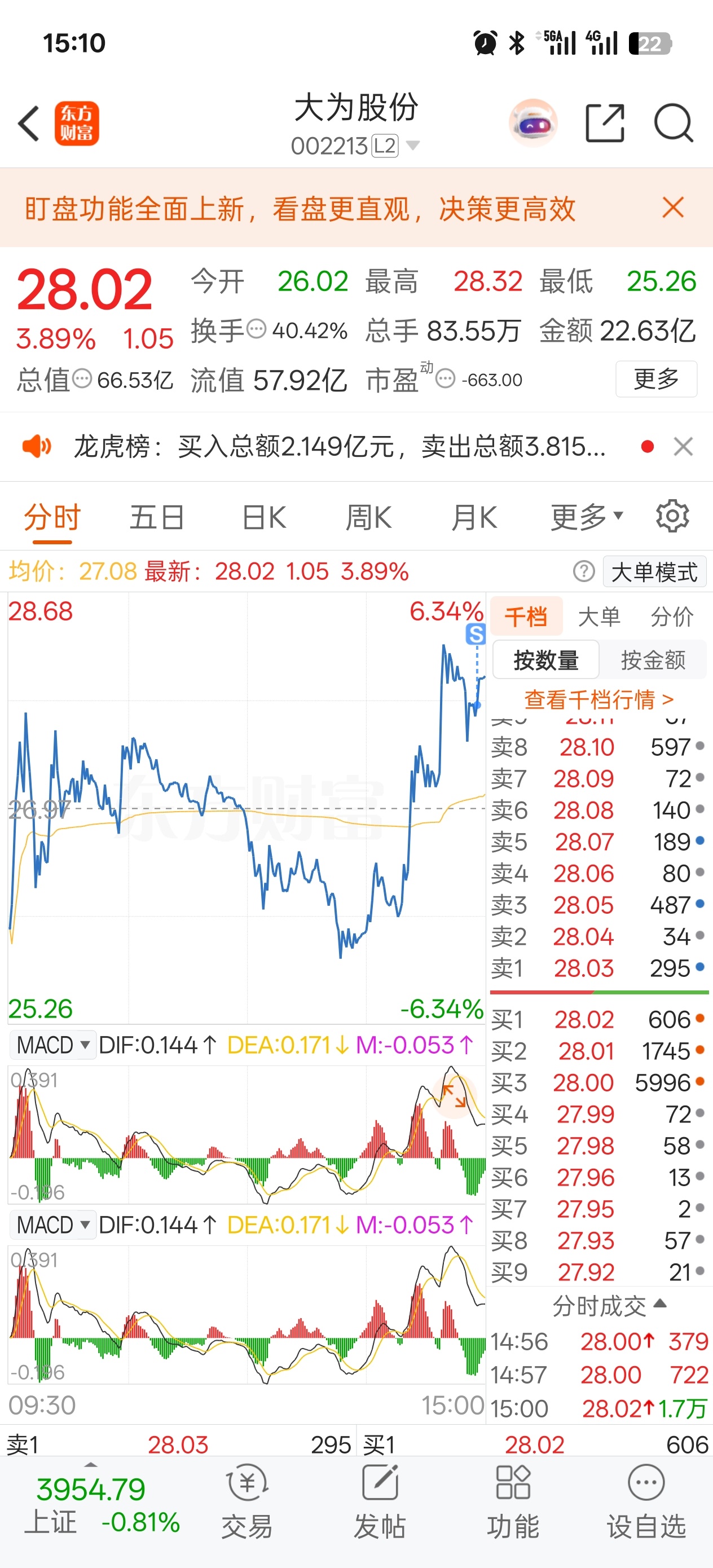 $大为股份(SZ002213)$ 兄弟们,我周一再回来