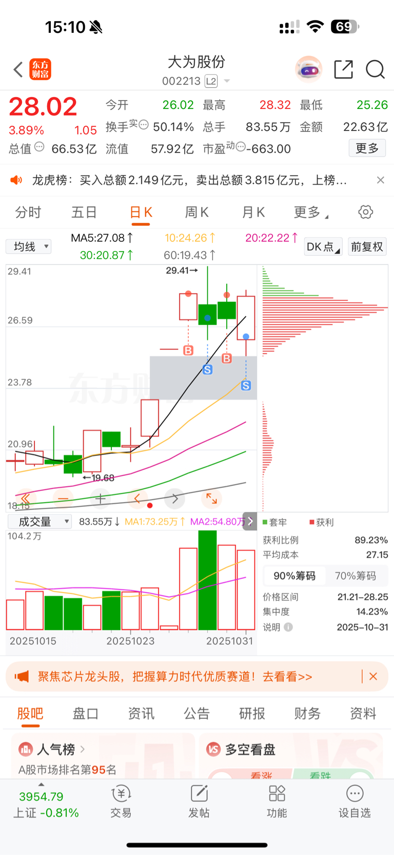 $大为股份(SZ002213)$ 再见,再也不见,随便了