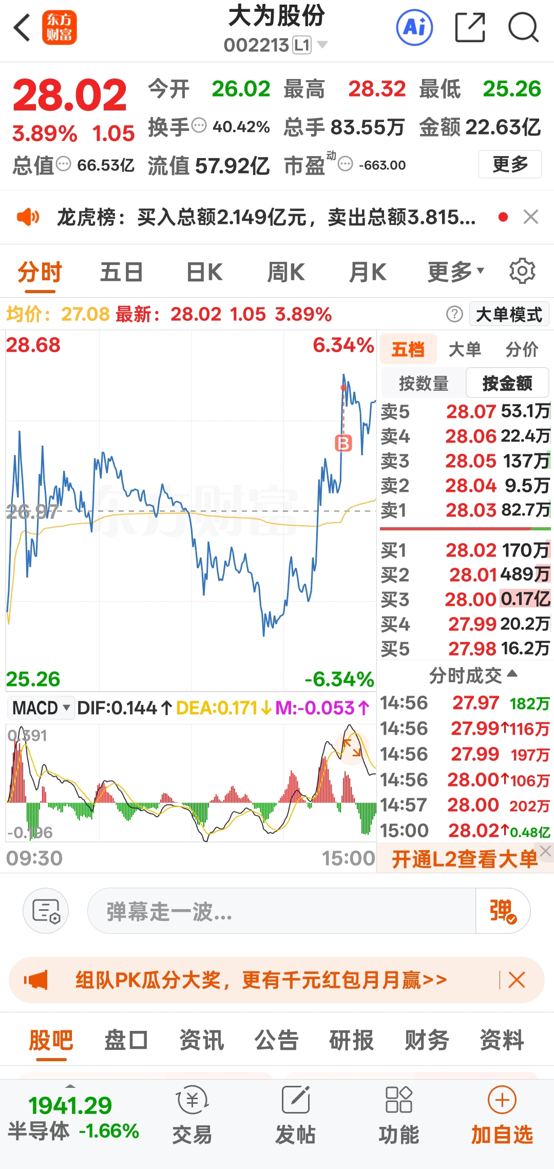 $大为股份(SZ002213)$ 水下犹犹豫豫,水上火力出击,并且还是在分时节点上容易上头