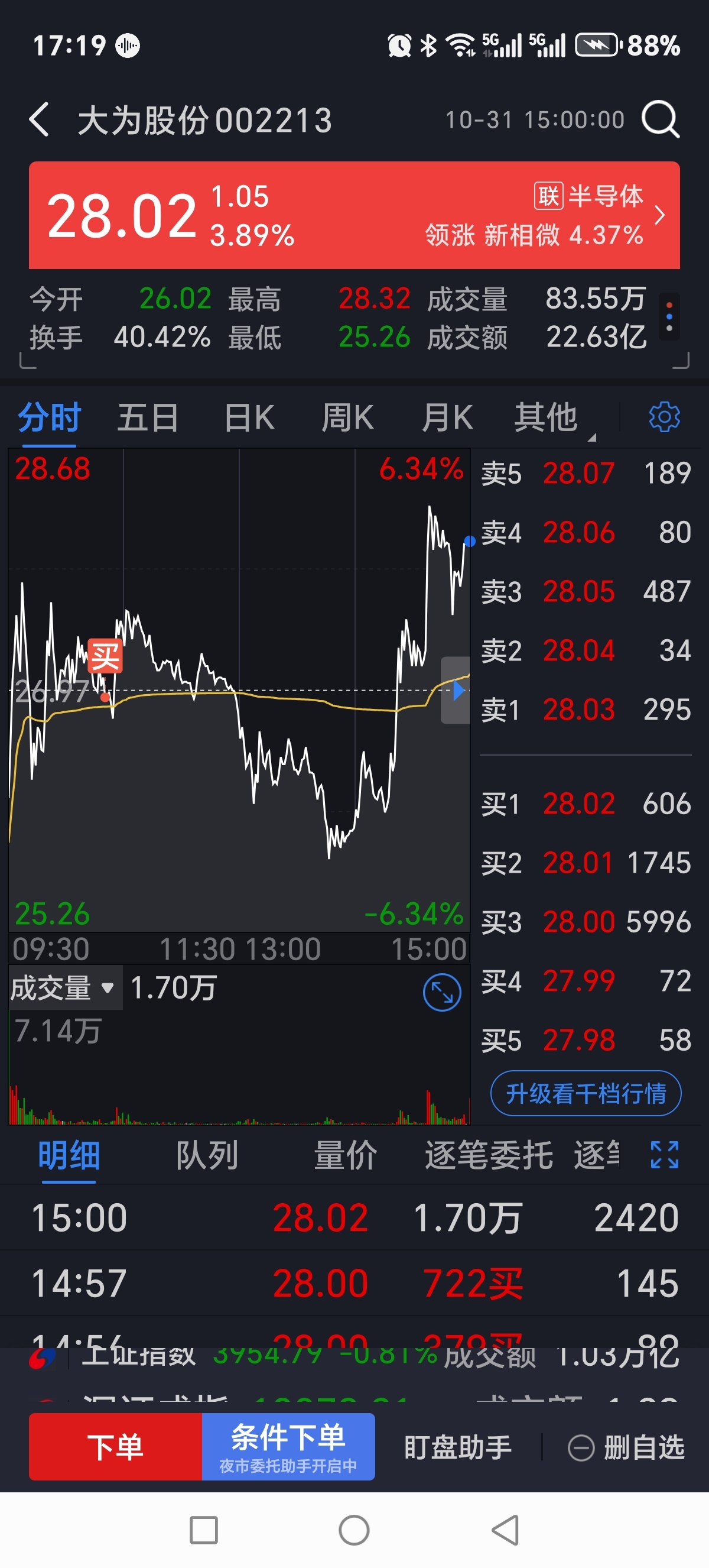 $大为股份(SZ002213)$ 睡个觉,睡过头了,没做好T。周一,预计又是低开……