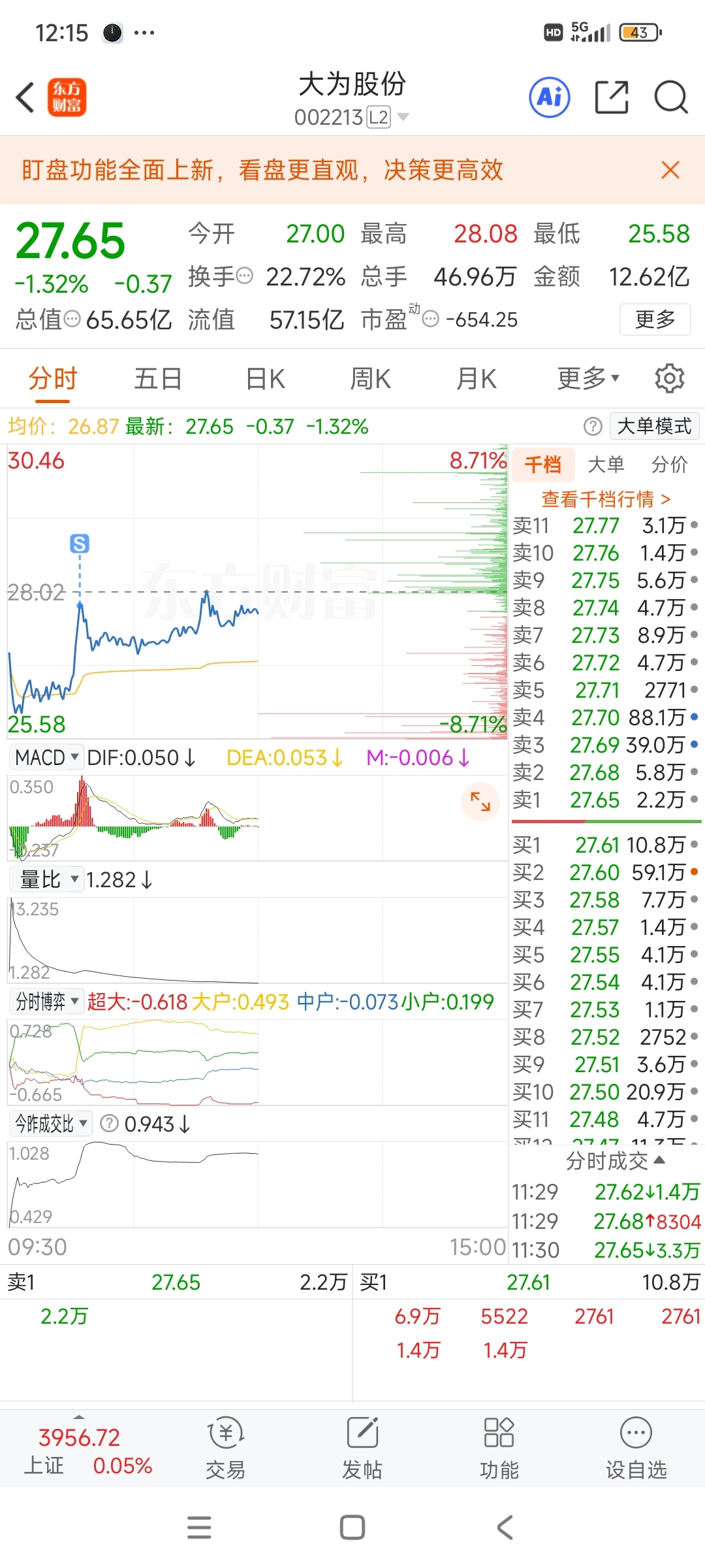 $大为股份(SZ002213)$ 感谢主力不杀之恩,好人啊