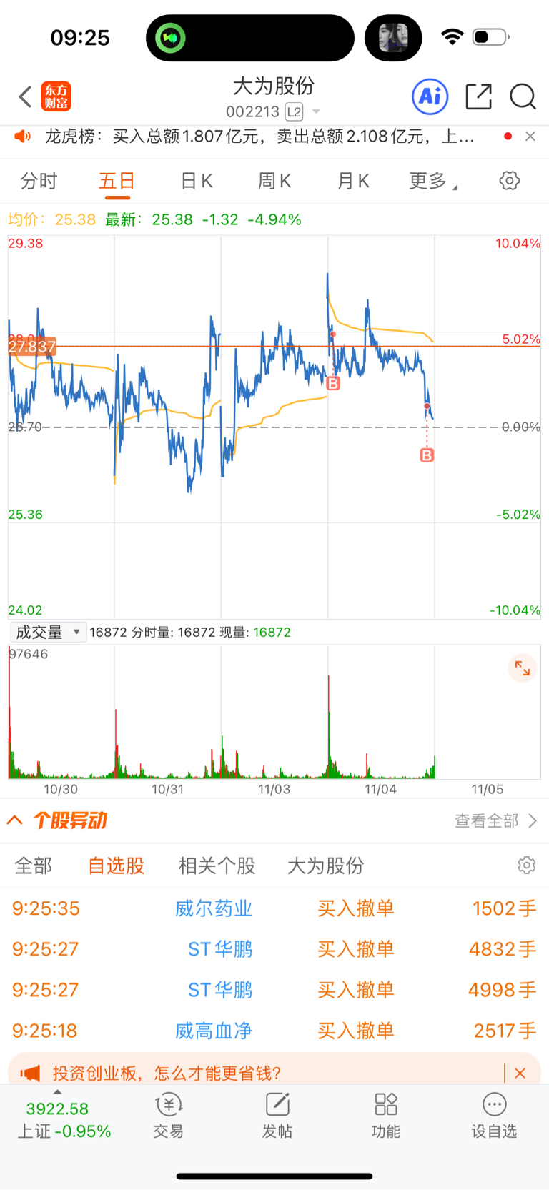 $大为股份(SZ002213)$ 你麻,我这么好的一个人,犯什么天条了?昨天进来,今天给我一个跌停,这还是牛市嘛