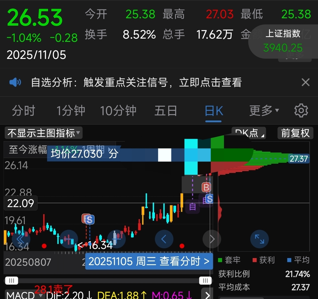 不知道是不是卖飞了,早盘最高点,下午验证一下,还算盈利