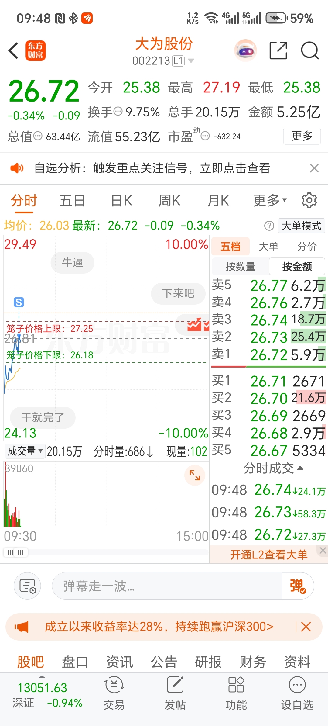 $大为股份(SZ002213)$ 走了走了,留下的发财