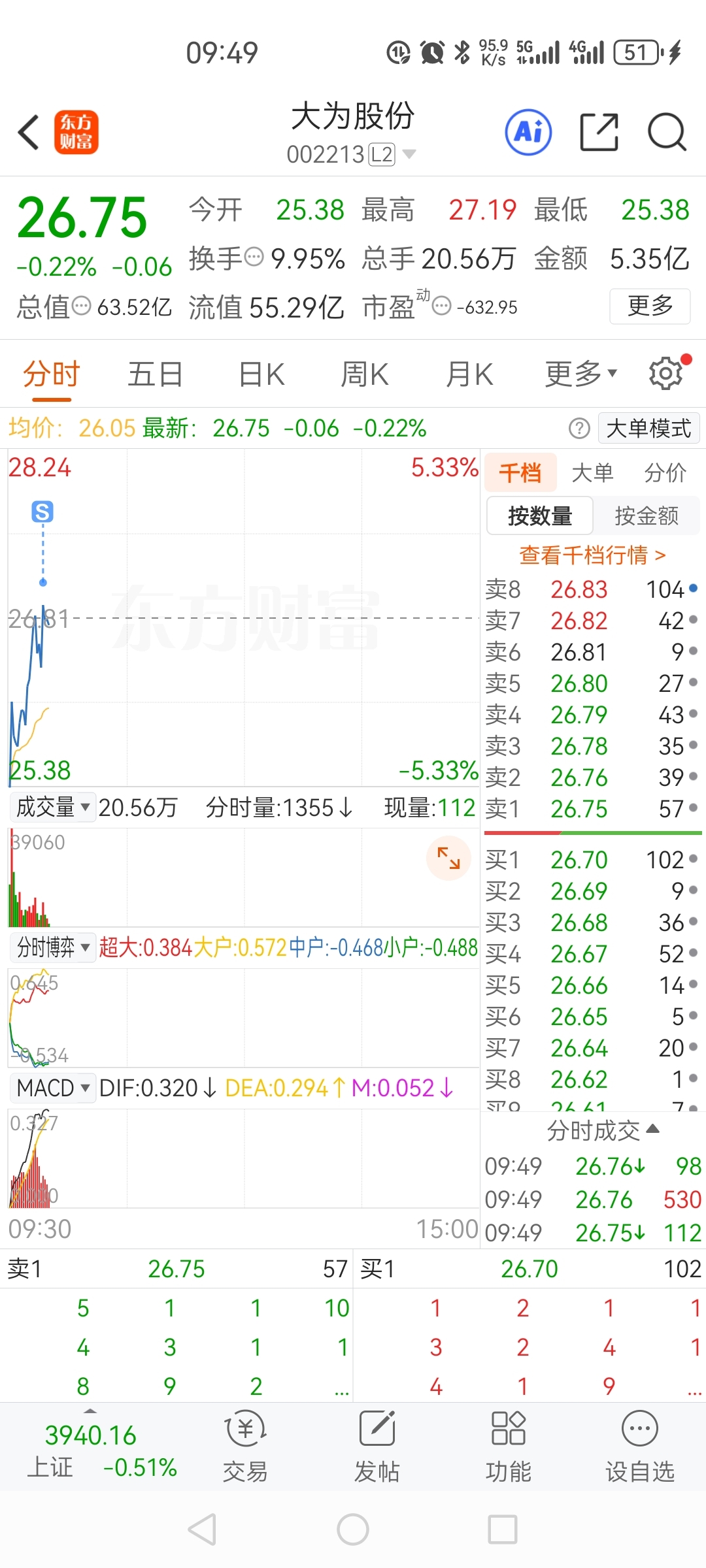 $大为股份(SZ002213)$ 这票被机构玩坏了!再见!