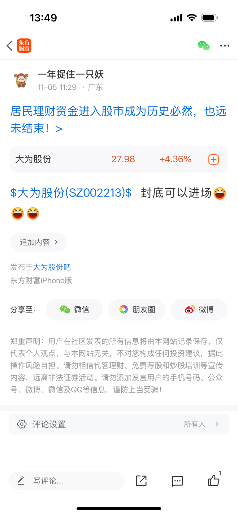 温馨提示: 1.根据《证券法》规定,禁止编造、传播虚假信息或者误导性信息,扰乱证券市场;2.用户在本社区发表的所有资料、言论等仅代表个人观点,与本网站立场无关,不对您构成任何投资建议。用户应基于自己的独立判断,自行决定证券投资并承担相应风险。《东方财富社区管理规定》