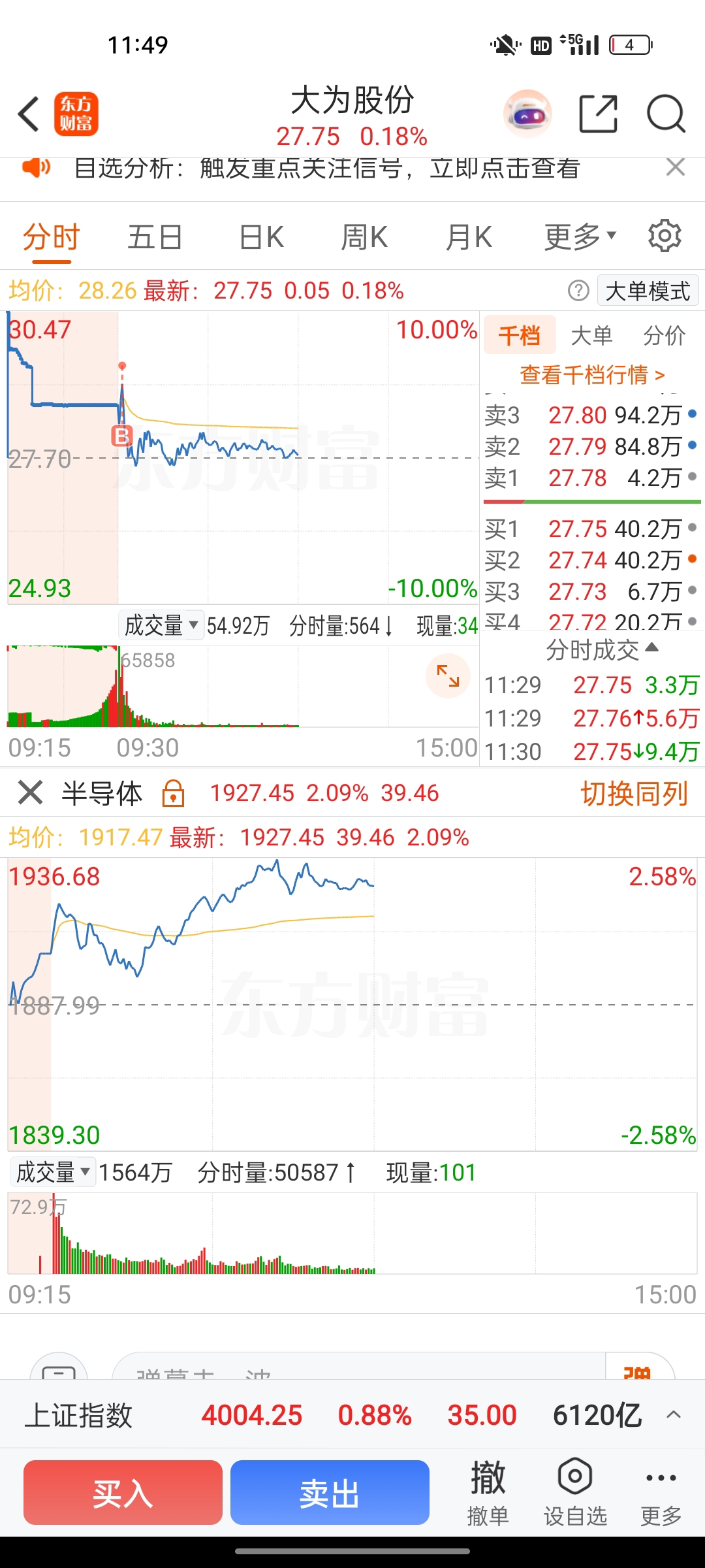 $大为股份(SZ002213)$ 你们说昨天刚启动,大盘板块同时启动今天大涨,这位大为早上诱多坑杀股民, 难道是我买进去才跌的吗? 假如早上我不进他会不会封板,