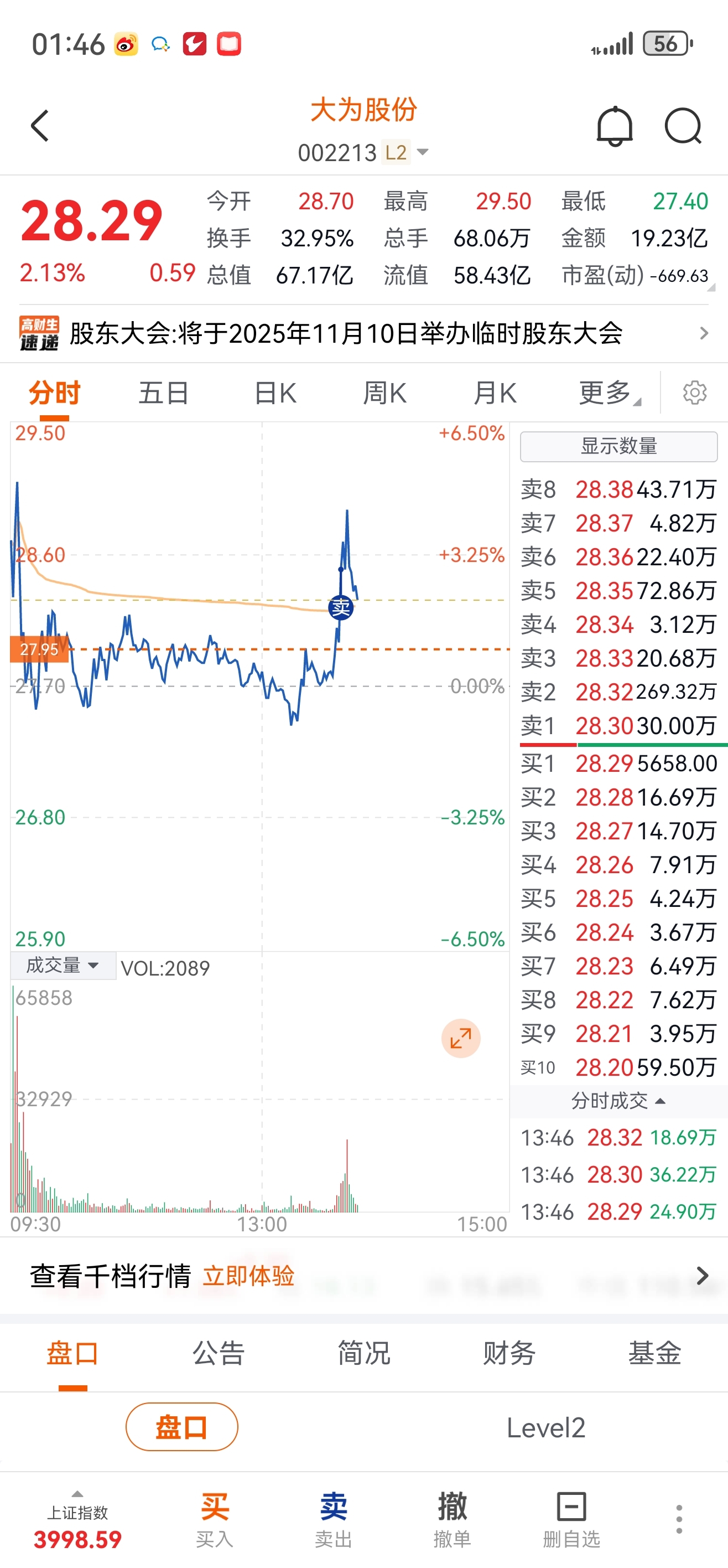 $大为股份(SZ002213)$ 受不了卖了,不再相见