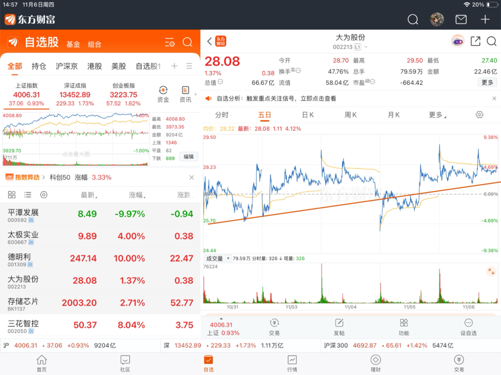 $大为股份(SZ002213)$ 低点上移,应该是能起飞的,只是今天小盘股普遍不给力,等待时机