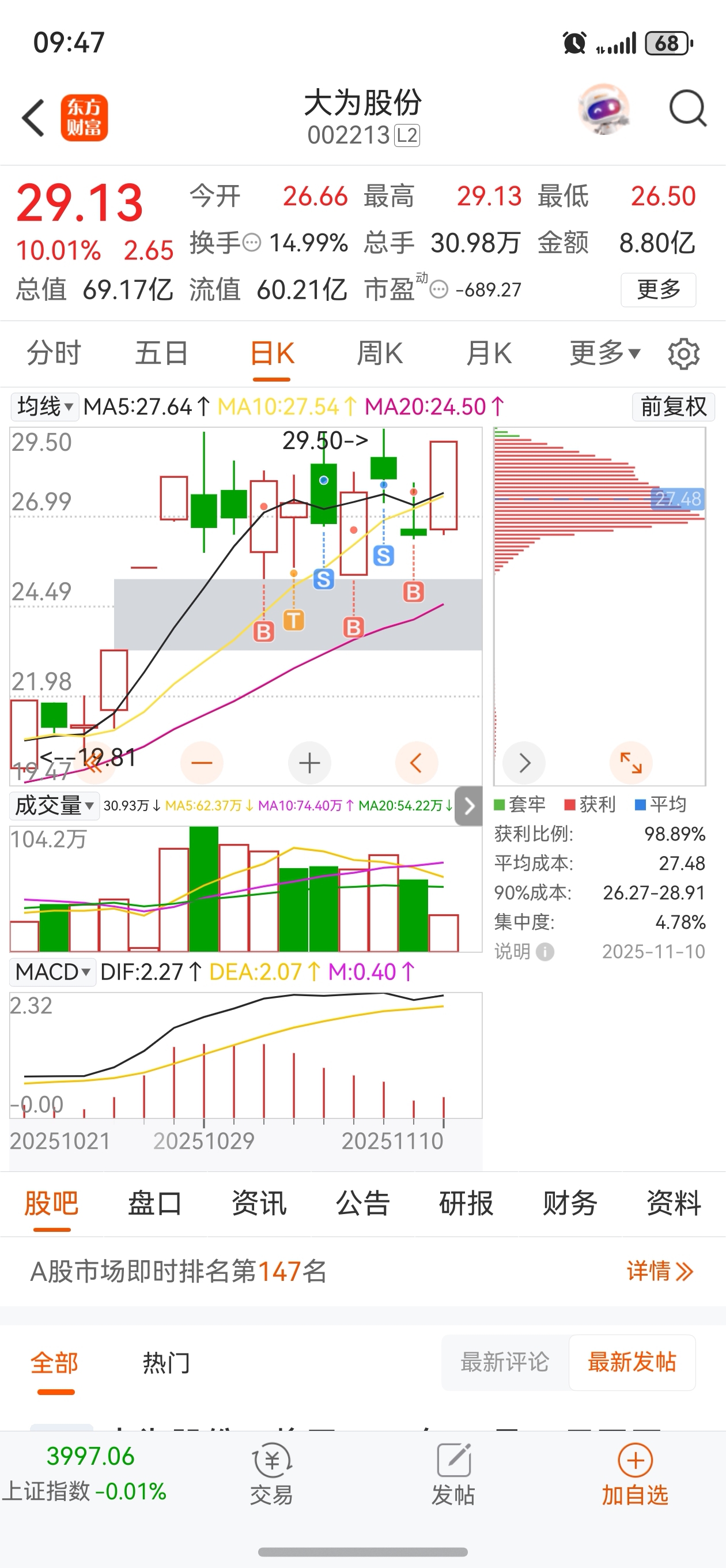 $大为股份(SZ002213)$ 买一次赚一次。好庄