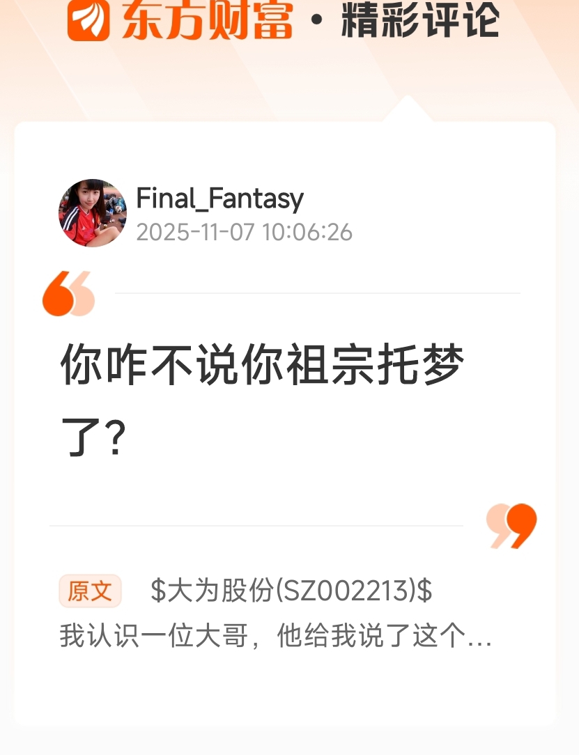 郑重声明:用户在财富号/股吧/博客等社区发表的所有信息(包括但不限于文字、视频、音频、数据及图表)仅代表个人观点,与本网站立场无关,不对您构成任何投资建议,据此操作风险自担。请勿相信代客理财、免费荐股和炒股培训等宣传内容,远离非法证券活动。请勿添加发言用户的手机号码、公众号、微博、微信及QQ等信息,谨防上当受骗!