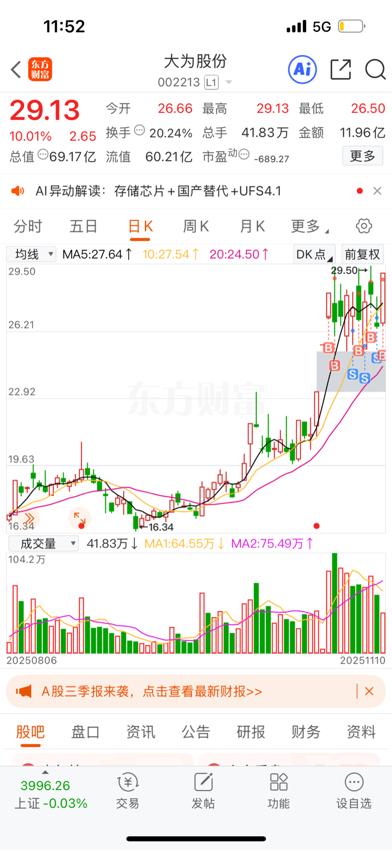 $大为股份(SZ002213)$ 一顿操作怒亏20个点