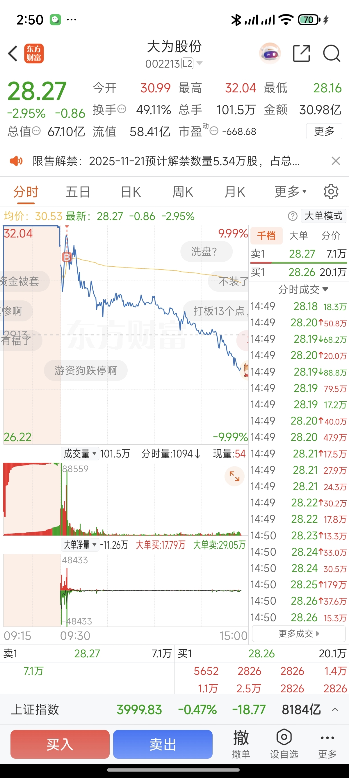 $大为股份(SZ002213)$ 还是没有控制住自己