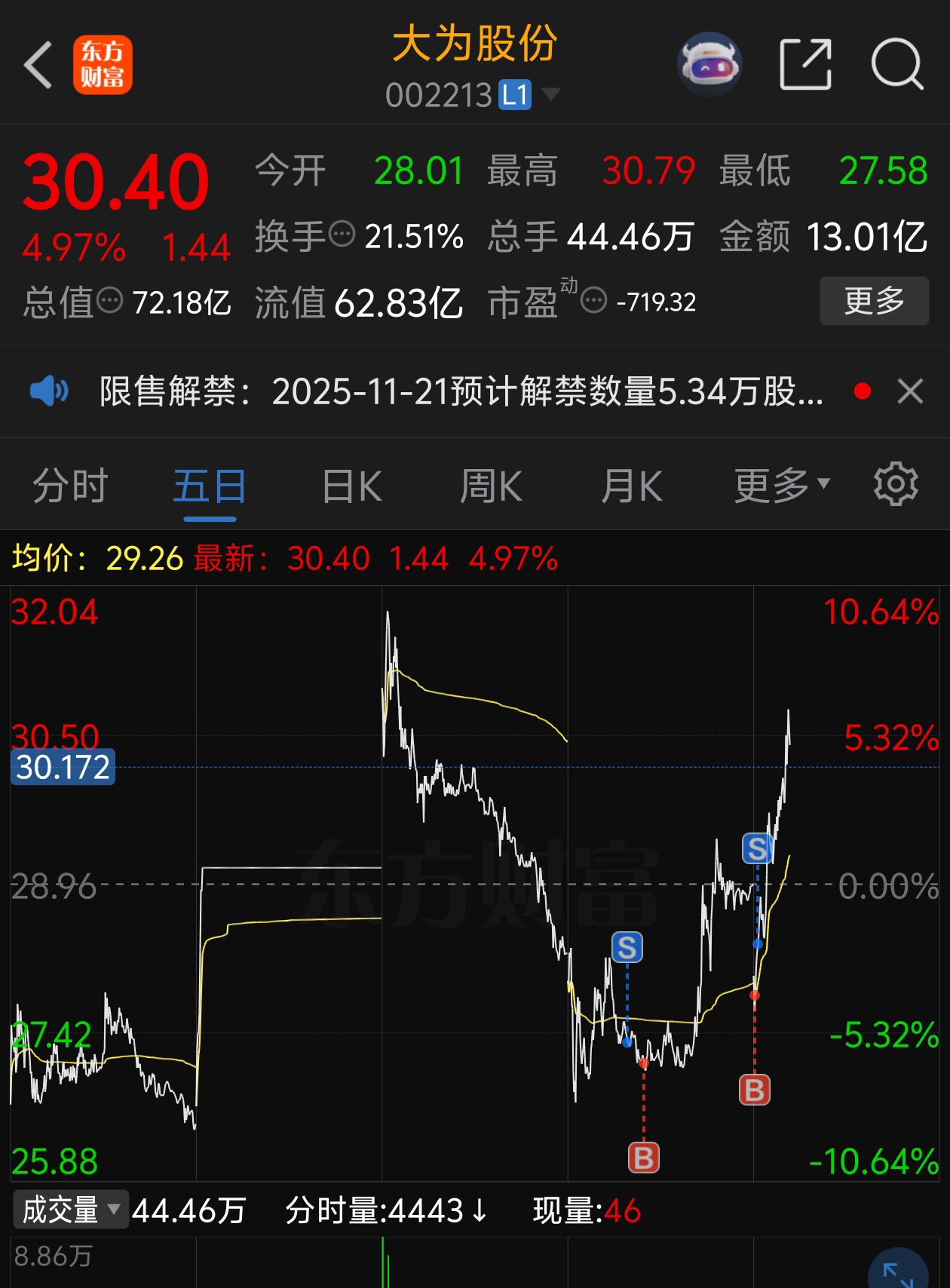 $大为股份(SZ002213)$ 我终于不趴着了,学着做t,这两天,做的什么玩意啊!昨天还亏0.1%