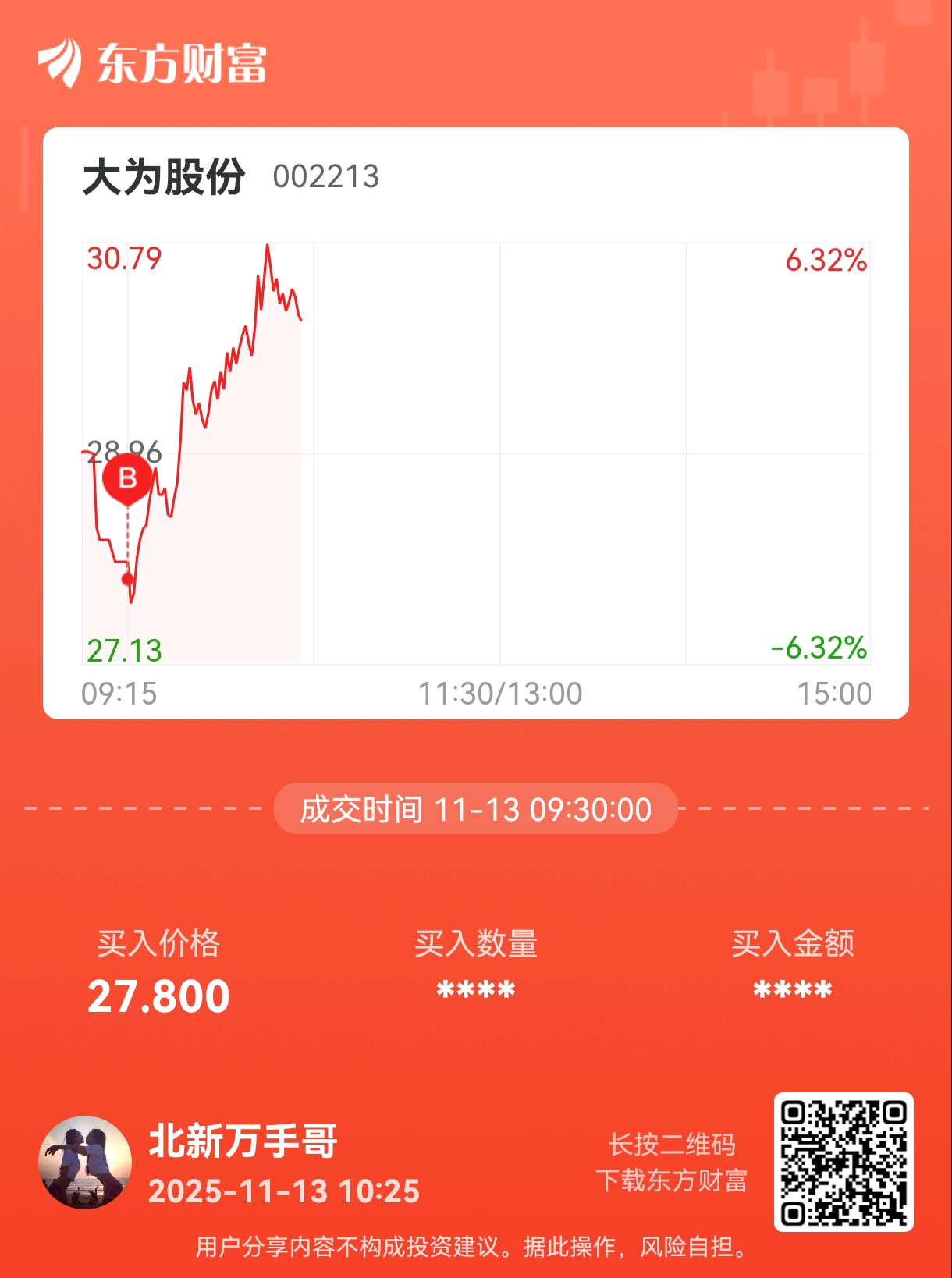 $大为股份(SZ002213)$ 跟随机构T起来