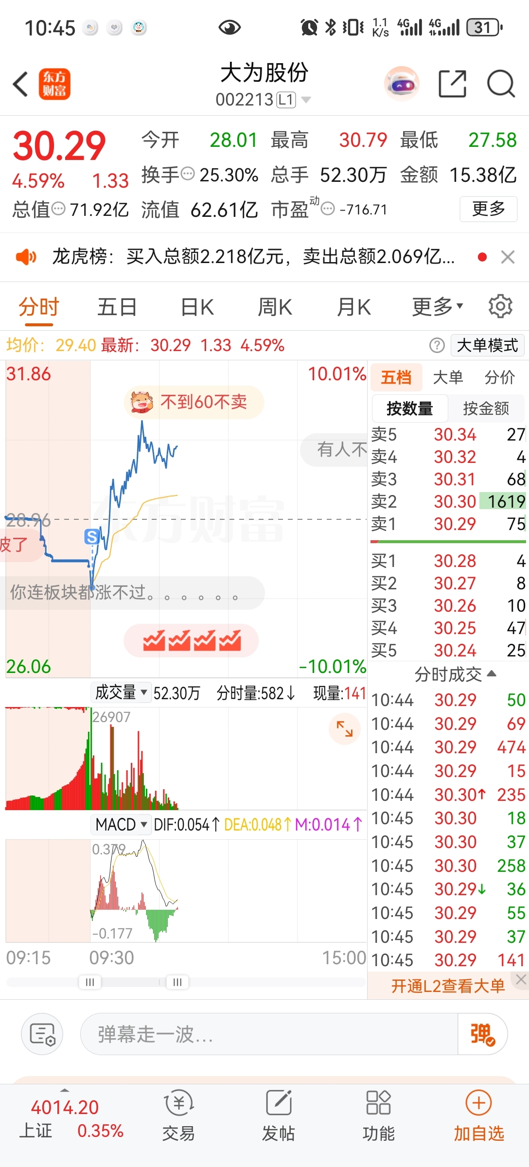 温馨提示: 1.根据《证券法》规定,禁止编造、传播虚假信息或者误导性信息,扰乱证券市场;2.用户在本社区发表的所有资料、言论等仅代表个人观点,与本网站立场无关,不对您构成任何投资建议。用户应基于自己的独立判断,自行决定证券投资并承担相应风险。《东方财富社区管理规定》