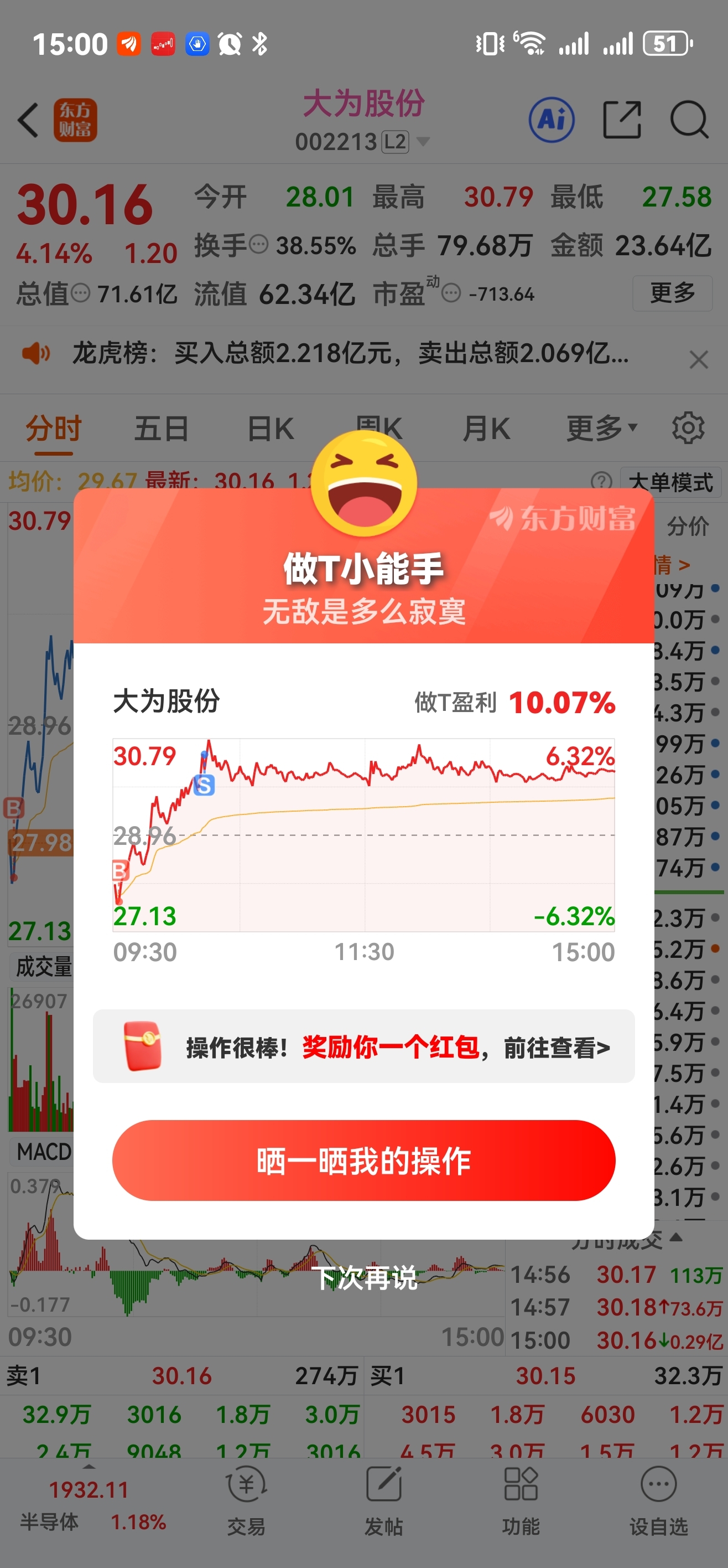 $大为股份(SZ002213)$ 每天t就完了