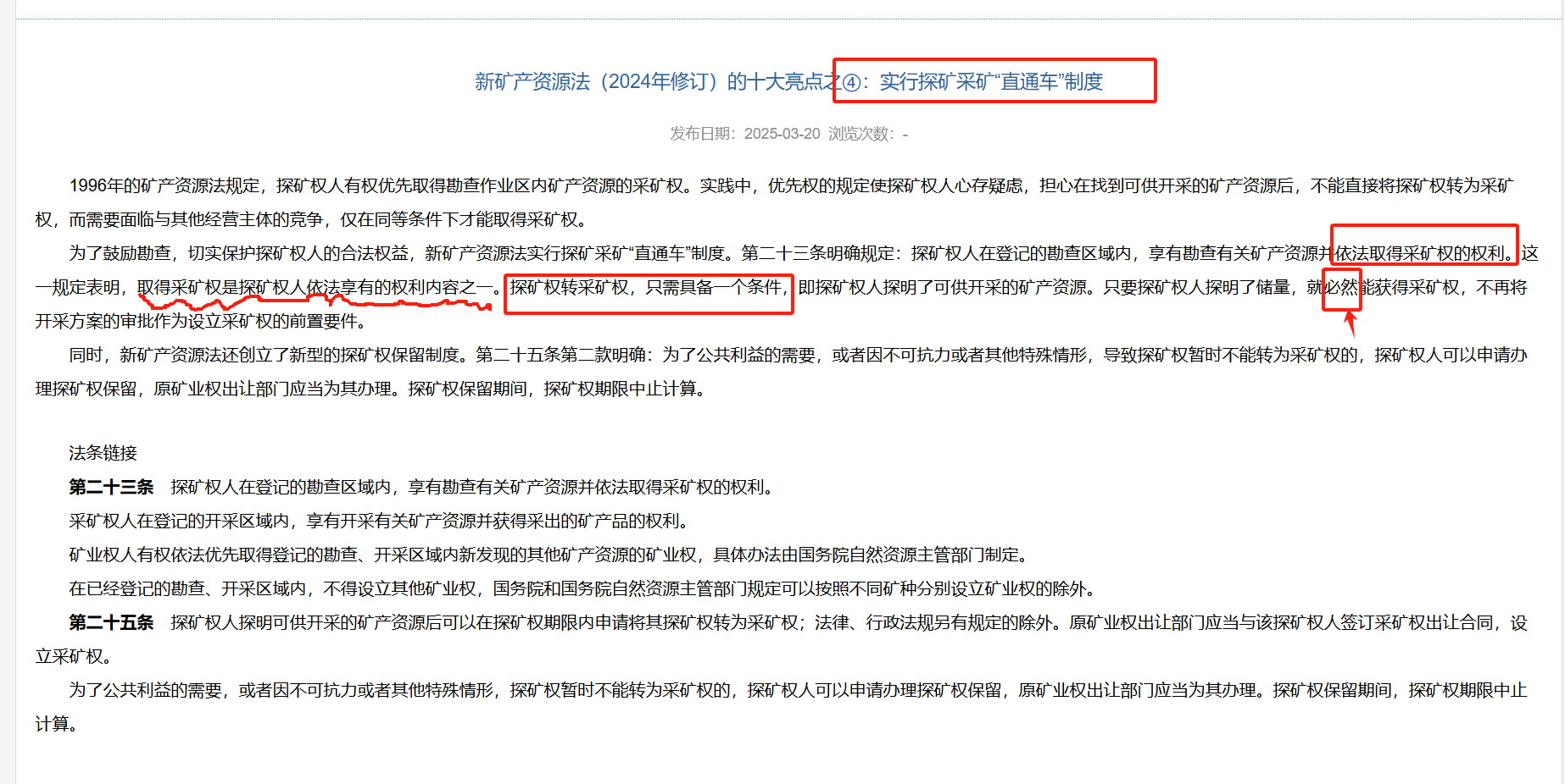 重大利好!!!恭喜大为股份即将获得采矿权。根据新矿产资源法,只要探矿权人探明矿产