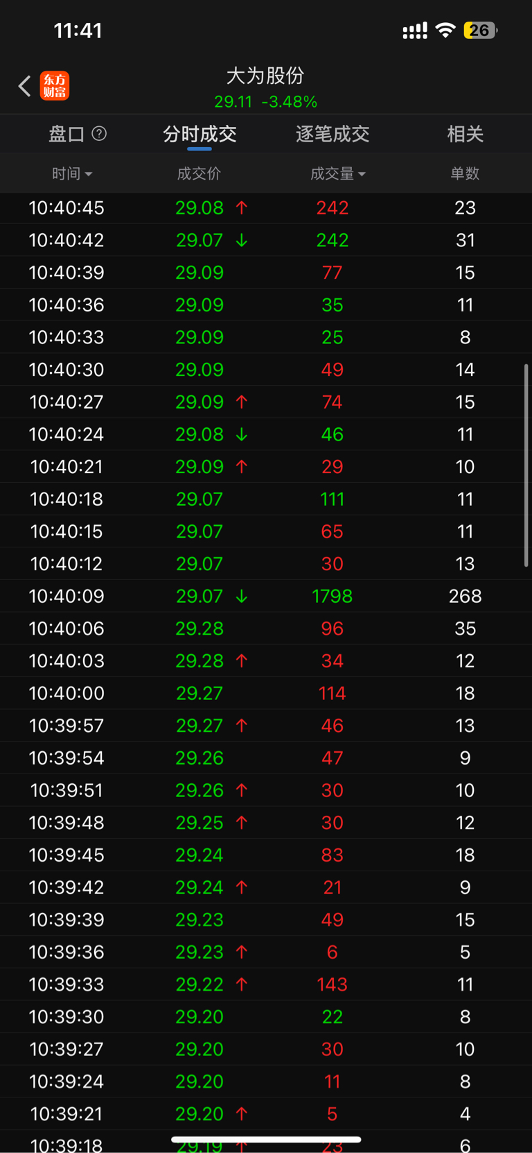 $大为股份(SZ002213)$ 小单拉,大单出货?