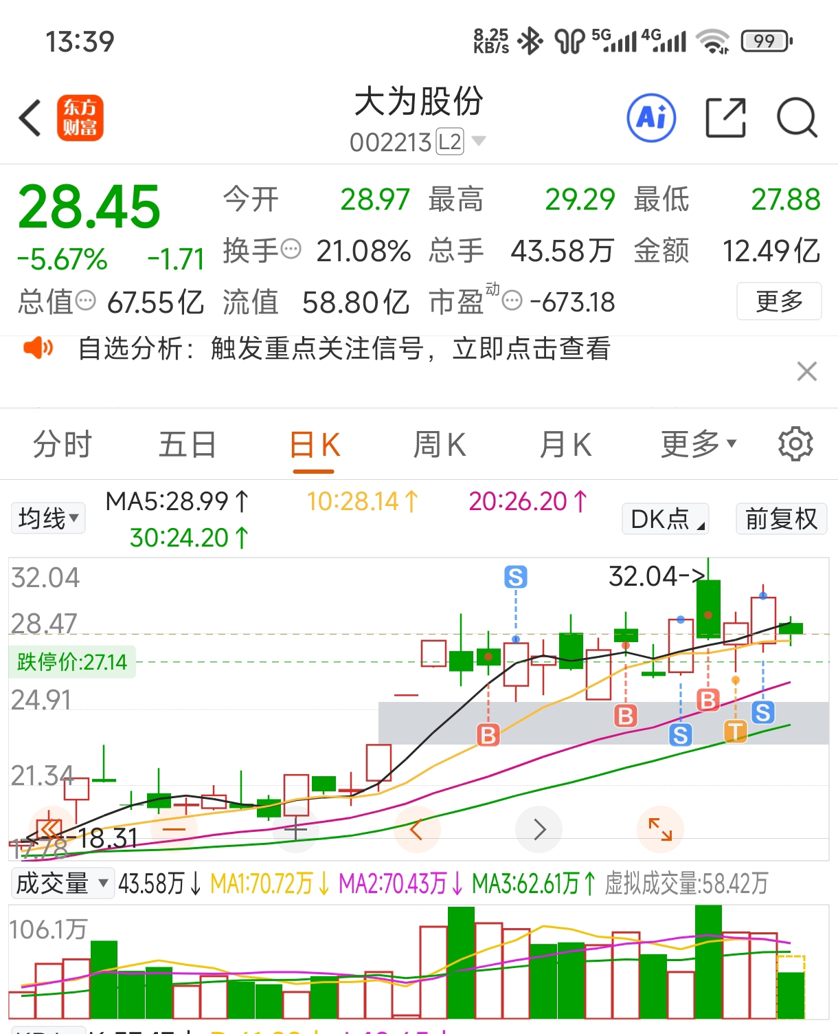 $大为股份(SZ002213)$ 躲过一劫