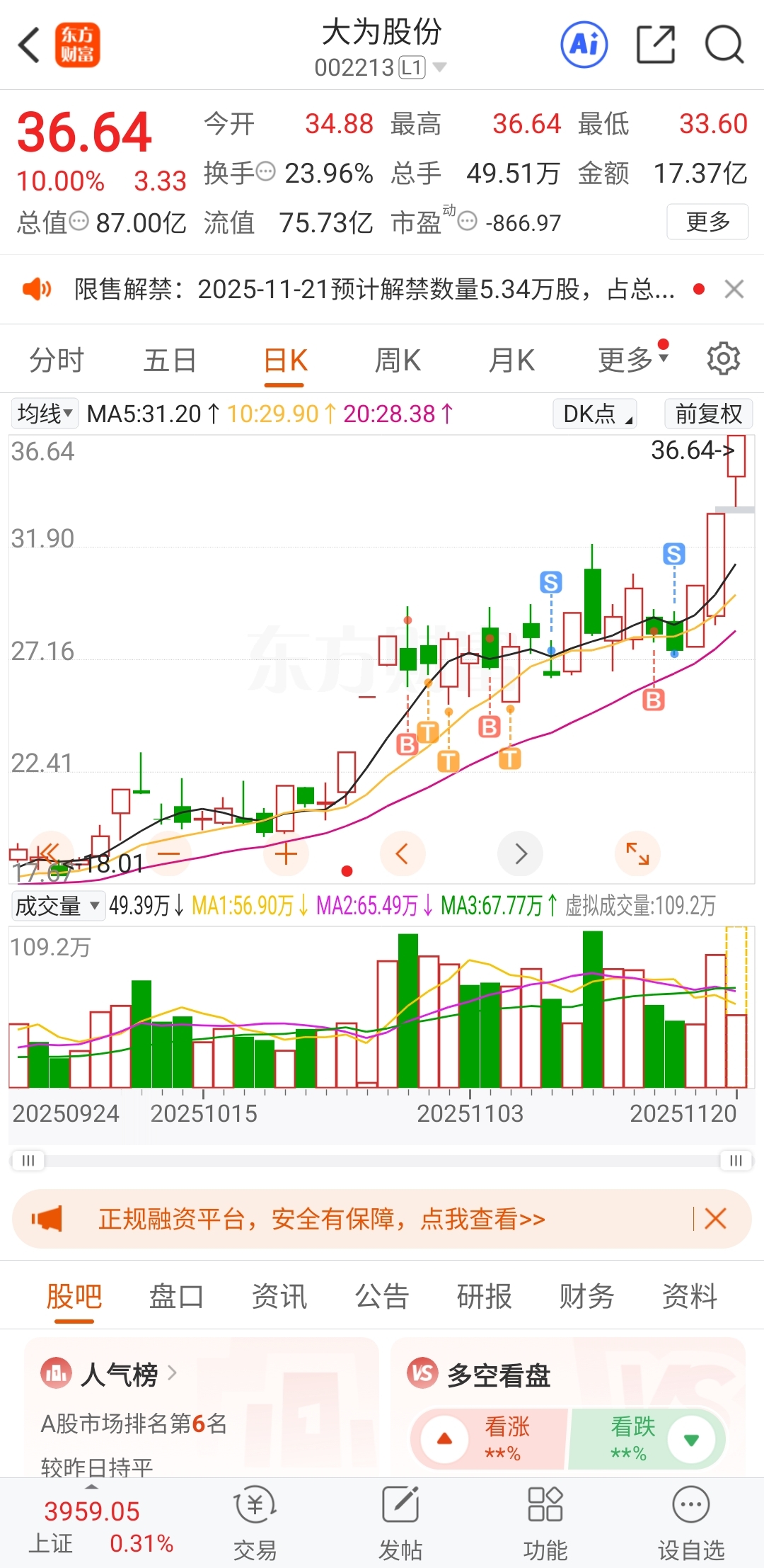 $大为股份(SZ002213)$ 准备销户了,玩不赢咯