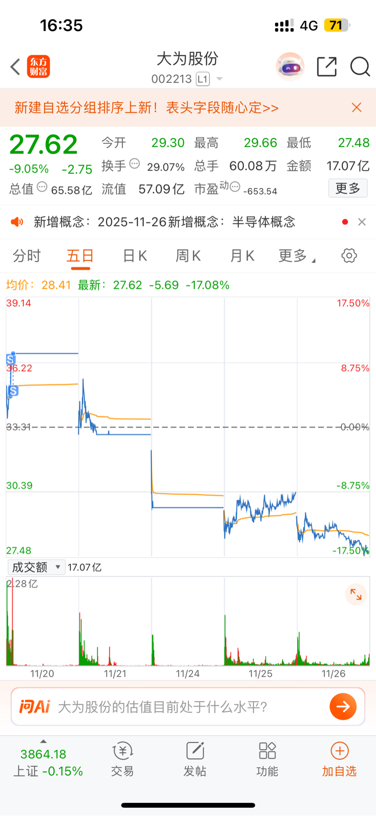 $大为股份(SZ002213)$ 幸好那天走了,不然还被套牢了