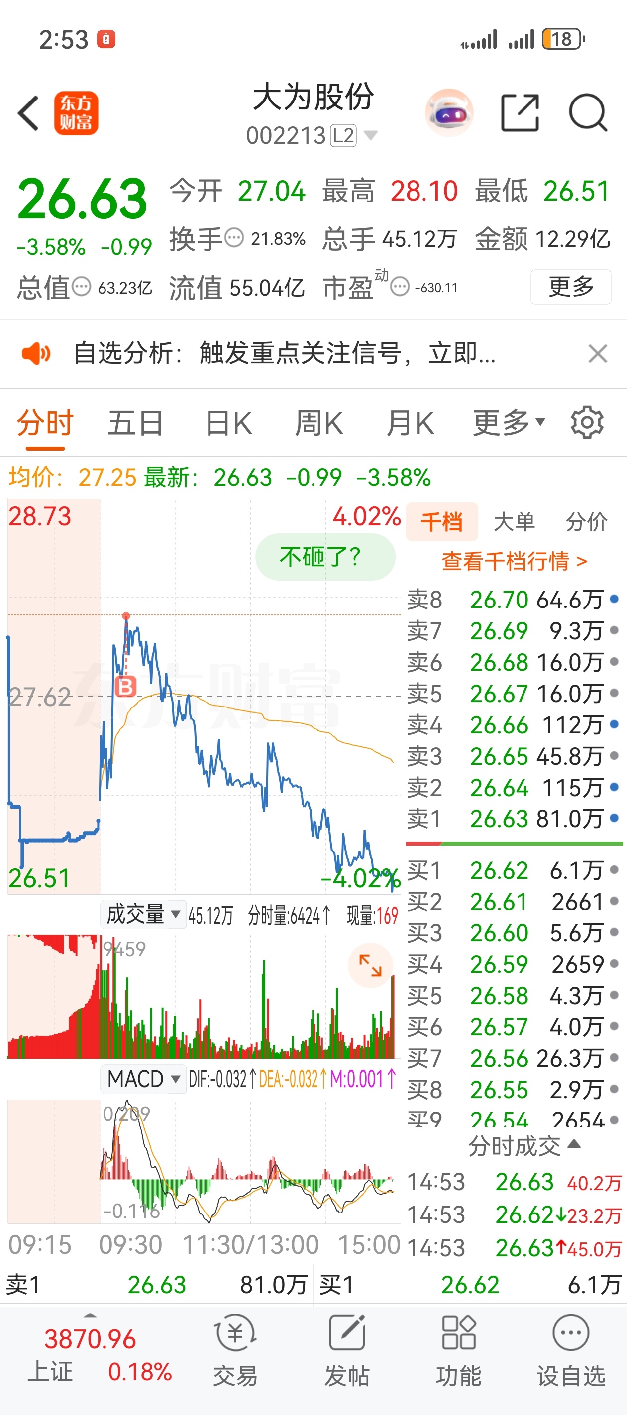 $大为股份(SZ002213)$ 人在无语的时候真的想笑。