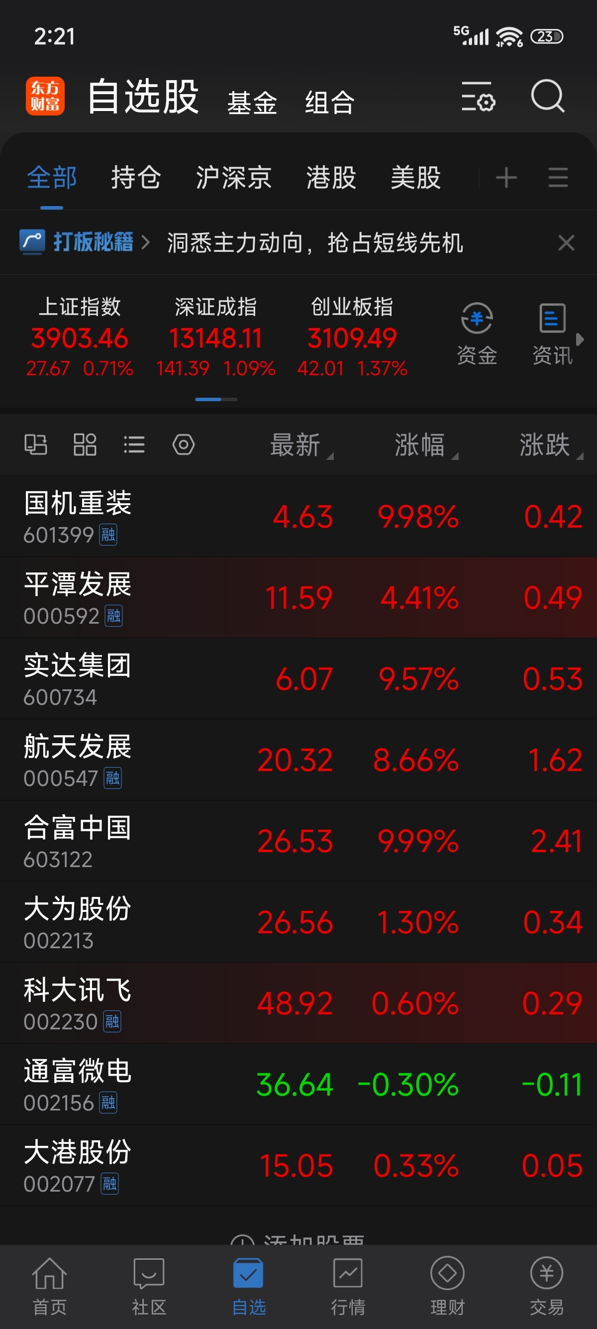 $大为股份(SZ002213)$ 今天之所以涨,是因为所有股都在涨