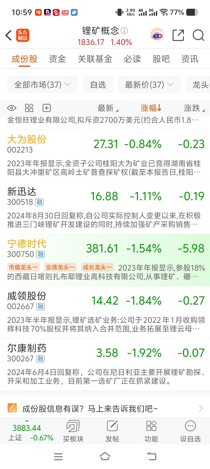 $大为股份(SZ002213)$ 存储涨跟不上,锂矿倒数第三名,你是干啥啥不行