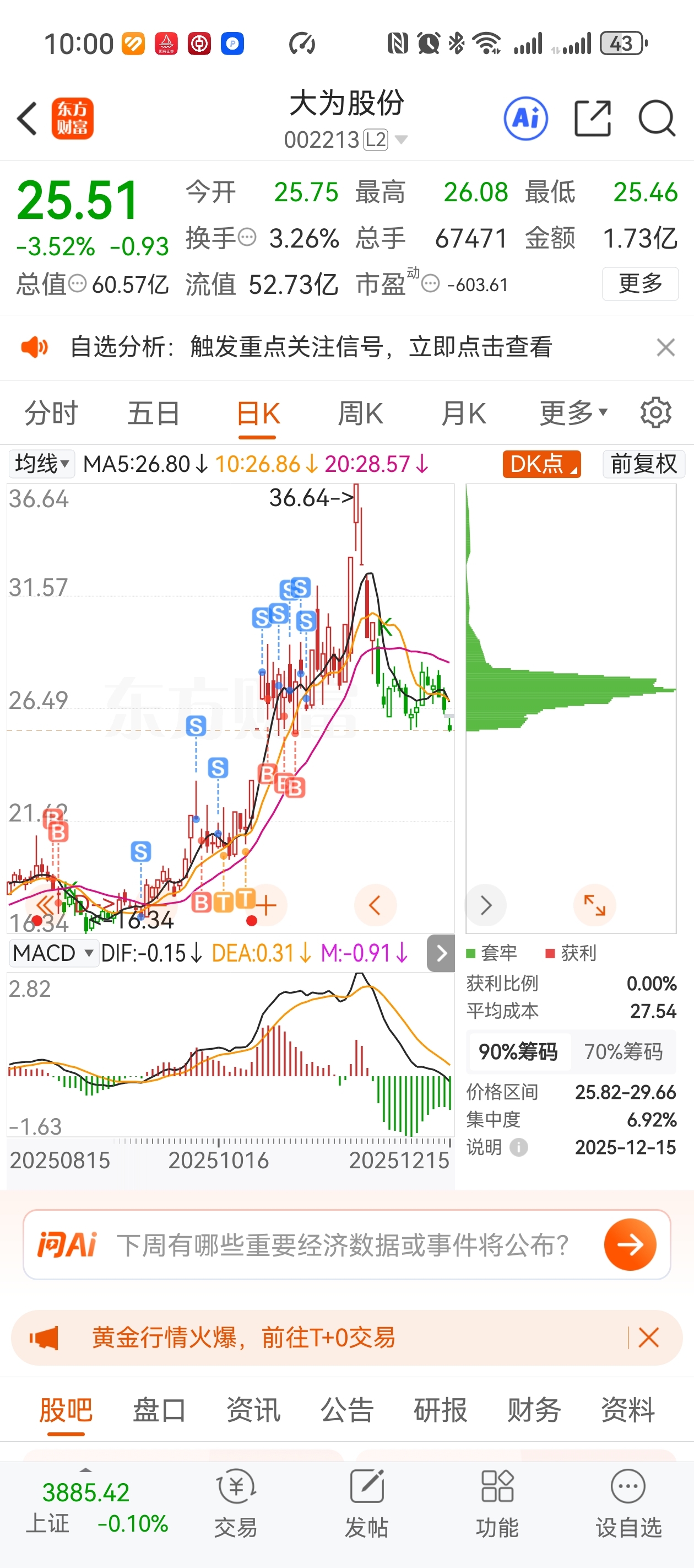 $大为股份(SZ002213)$ 还好我早早卖剩了点底仓,虽然吃不到后面两个涨停,但是现在开心哦。。。我准备回来了