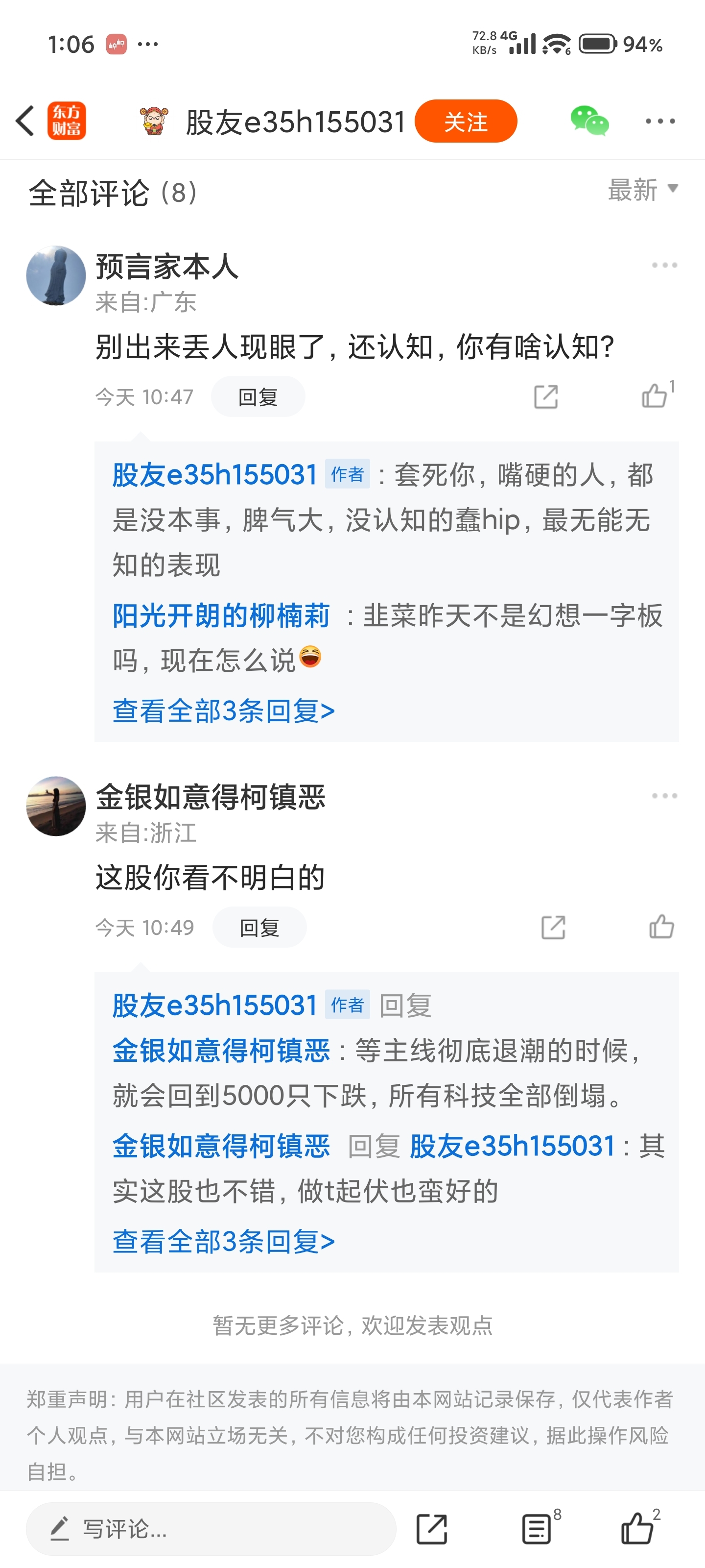 温馨提示: 1.根据《证券法》规定,禁止编造、传播虚假信息或者误导性信息,扰乱证券市场;2.用户在本社区发表的所有资料、言论等仅代表个人观点,与本网站立场无关,不对您构成任何投资建议。用户应基于自己的独立判断,自行决定证券投资并承担相应风险。《东方财富社区管理规定》