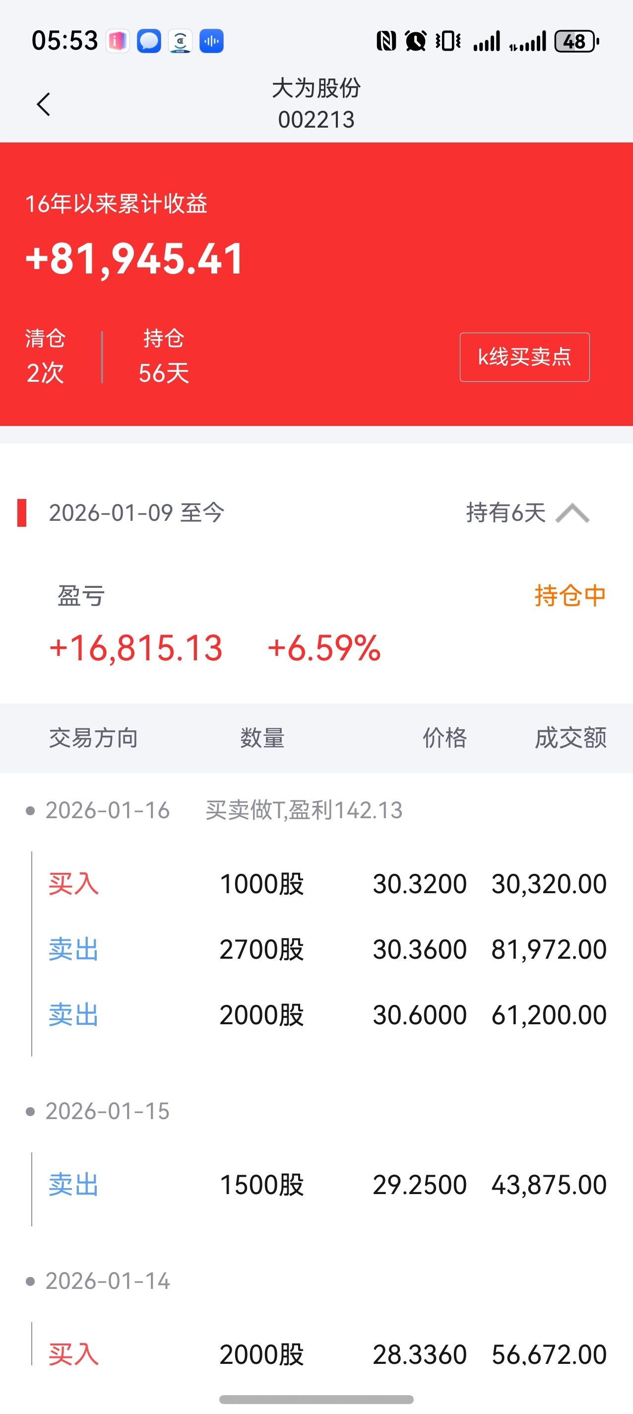 $大为股份(SZ002213)$ 这股的尿性很好,耐心持有,有大红包,全仓干